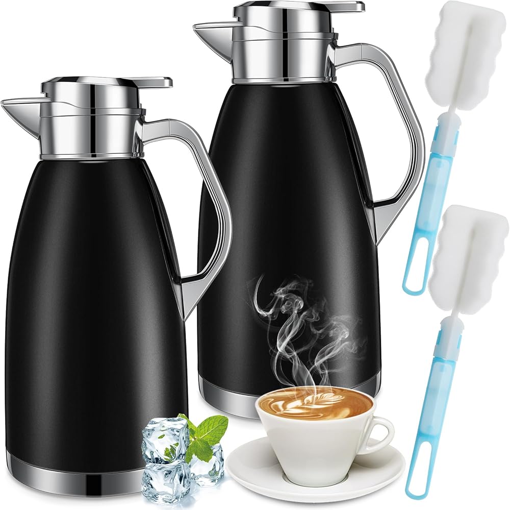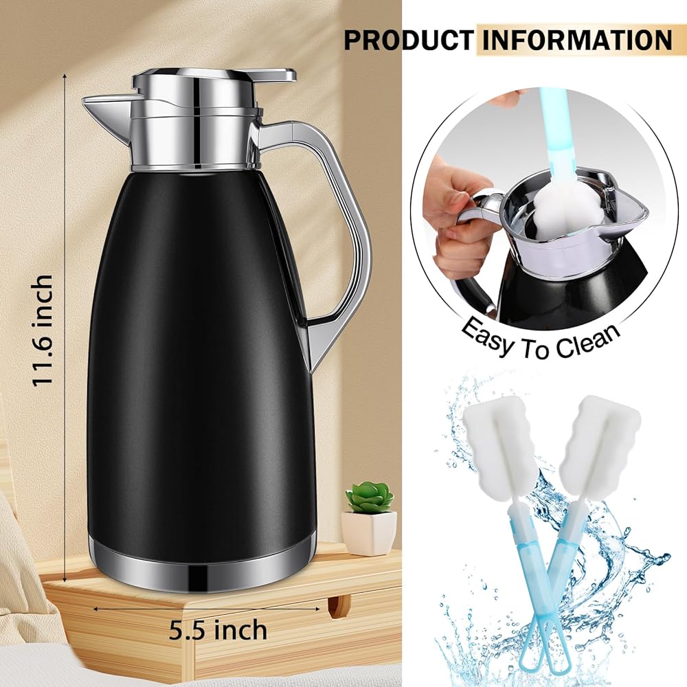 Tioncy 2 Pcs Thermal Coffee 78oz Insulated Carafe Hot Water Dispenser Stainless Steel Carafe for Hot Liquid Coffee Tea Milk with 2 Brushes Keep 12 Hours Hot 24 Hours Cold(Black)