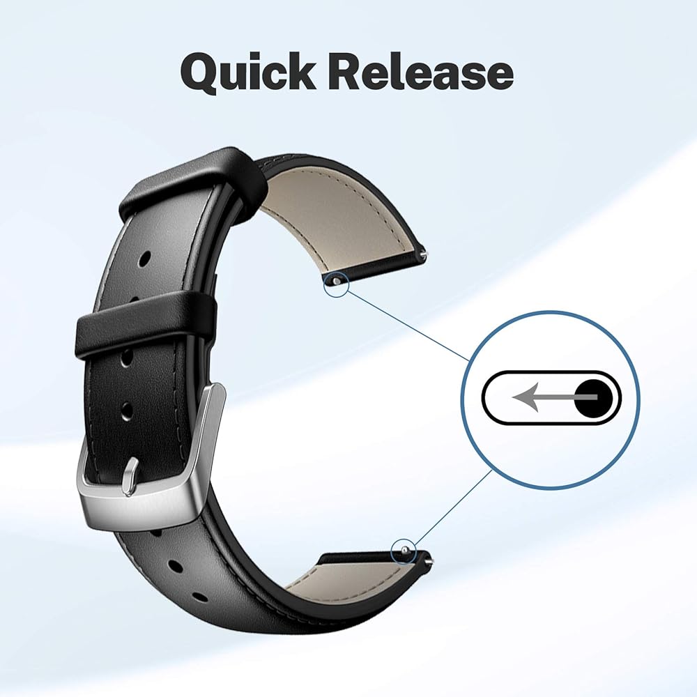 【Easy and quick installation】This leather strap has a quick-release function without any tools; it is easy to change and set up at will. Slide lever with finger to release or attach watch strap, very easy for beginners. save time.