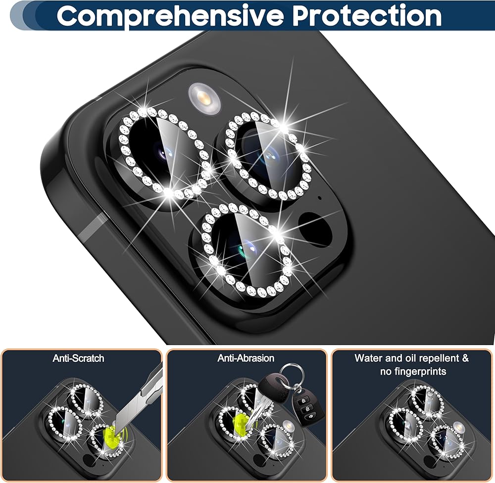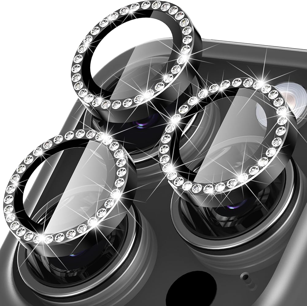 Suoman for iPhone 15 Pro Max / 15 Pro Camera Lens Protector, [Strong Adhesion] Easy to Install 9H Tempered Glass Ultra Anti-Scratch Glitter Independent Lens Protector-Diamond Black
