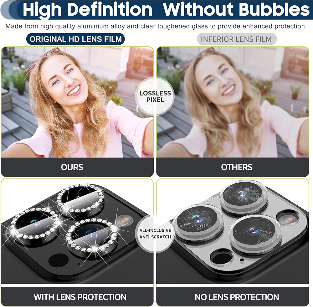 【Product Material/Features】The optical-grade antireflection coating technology on the glass surface prevents fingerprints, sweat and grease residues, Aluminum alloy explosion-proof Camera Lens Protector, strong protection of your lens,ensuring worry-free taking pictures.