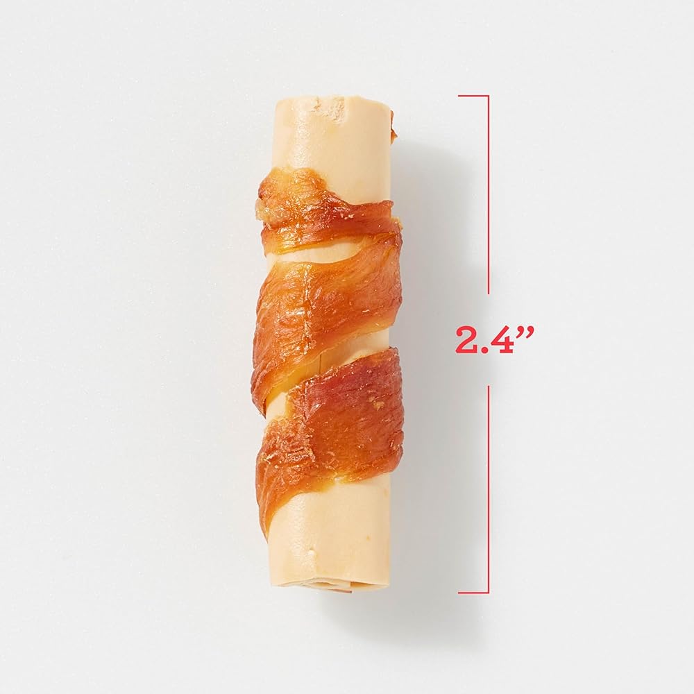 DreamBone® chews have all the benefits of a rawhide chew…without the rawhide. No-rawhide DreamBone chews are made with real chicken, beef, bacon and cheese or sweet potato and wholesome vegetables for a scrumptious taste dogs can't resist! Boo! No-rawhide DreamBone® Mini Broomsticks™ wrapped with real chicken for dogs make a scrumptious Halloween treat just for your pup! Made with real chicken and wholesome vegetables, then wrapped with a delectable layer of real chicken on the outside, DreamBone Mini Broomsticks have an irresistible taste dogs dream about. Enriched with vitamins and minerals, these chews are a healthy alternative to rawhide. Treat your small or toy-sized pup to these easy-to-digest, 100 percent delicious mini chews. Chewing helps maintain healthy teeth, making these chews a treat both you and your dog can love. Contains 8 stick-shaped mini chews. Feed your dog up to two chews per day. Always supervise your pup during chewing activity and provide access to fresh, clean water. These chews are intended for intermittent or supplemental feeding only. Store in a cool, dry place. After opening, reseal or store in an airtight container to preserve freshness. The experts at DreamBone brand want you to have healthy, happy dogs. We know that your dog is more than a pet – they're family.
