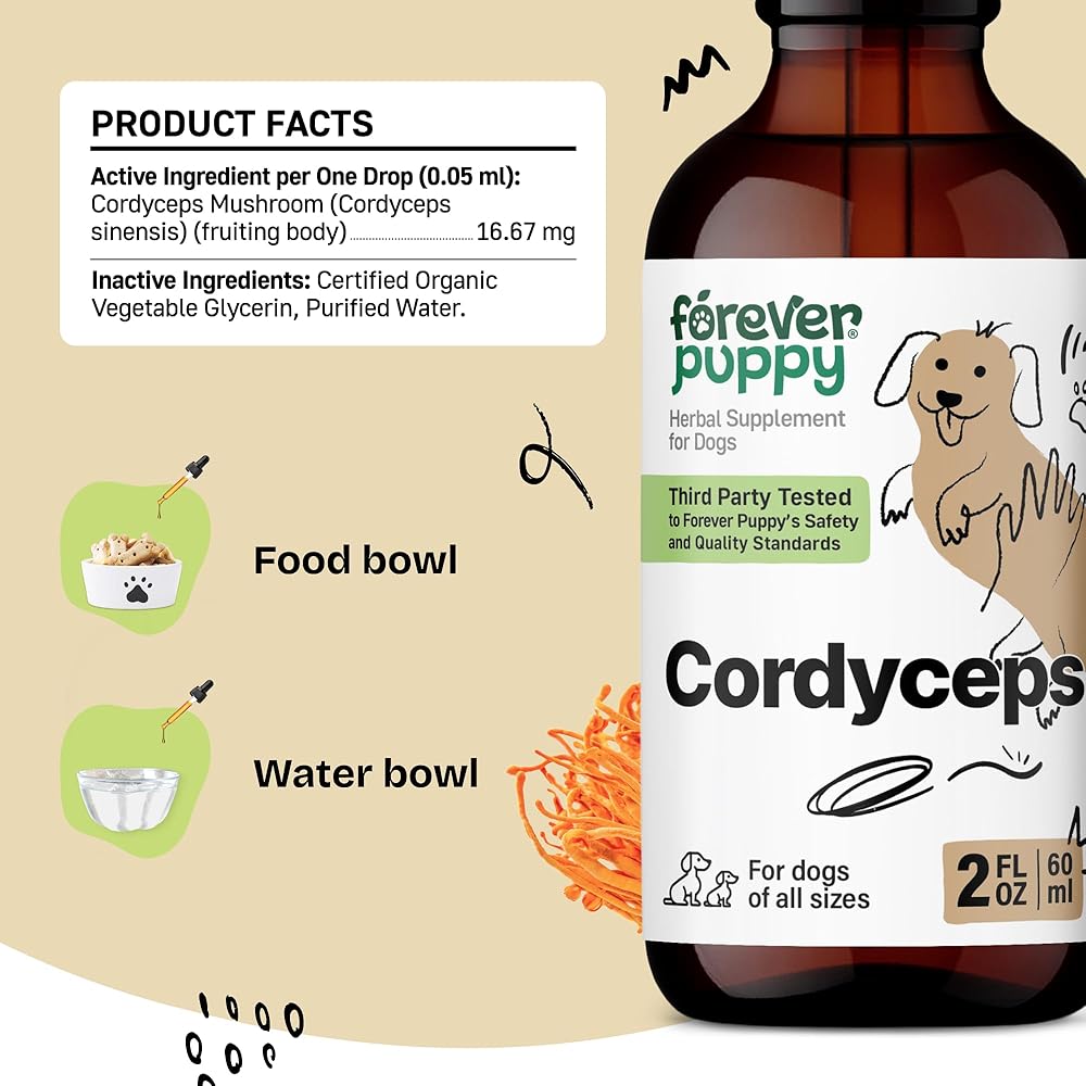 Forever Puppy Cordyceps Mushroom Tincture for Dogs - Energy Support Supplement w/Cordyceps Sinensis Extract for Kidney Cleanse - Mushroom Drops for Dogs' Canine Kidney Health Support - 2 oz