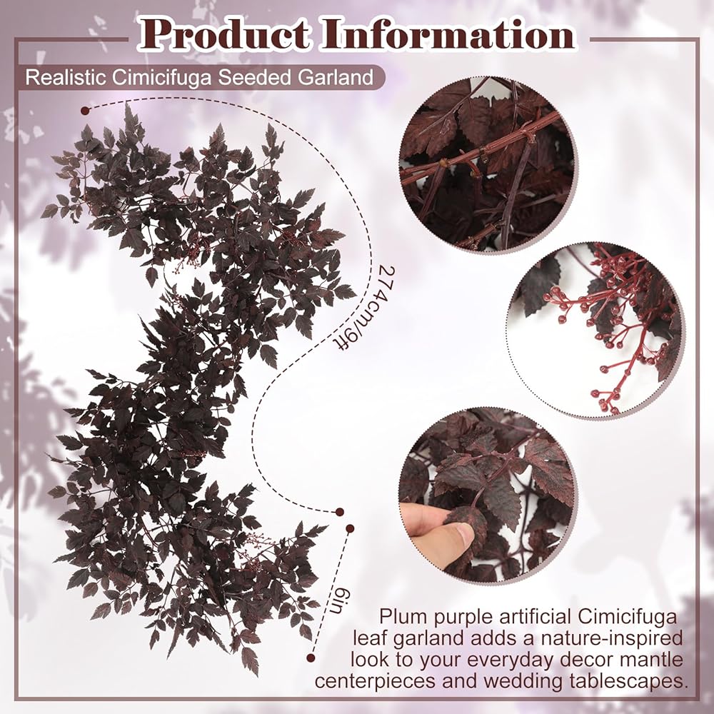 Plum Cimicifuga Seeded Garland: the fall leaves garland is meticulously designed with a length of 6 ft/ 183cm; This size makes it versatile enough to drape over your mantel, dining table, or even around doors and windows; It's capable of adding warmth and charm to various spaces within your home