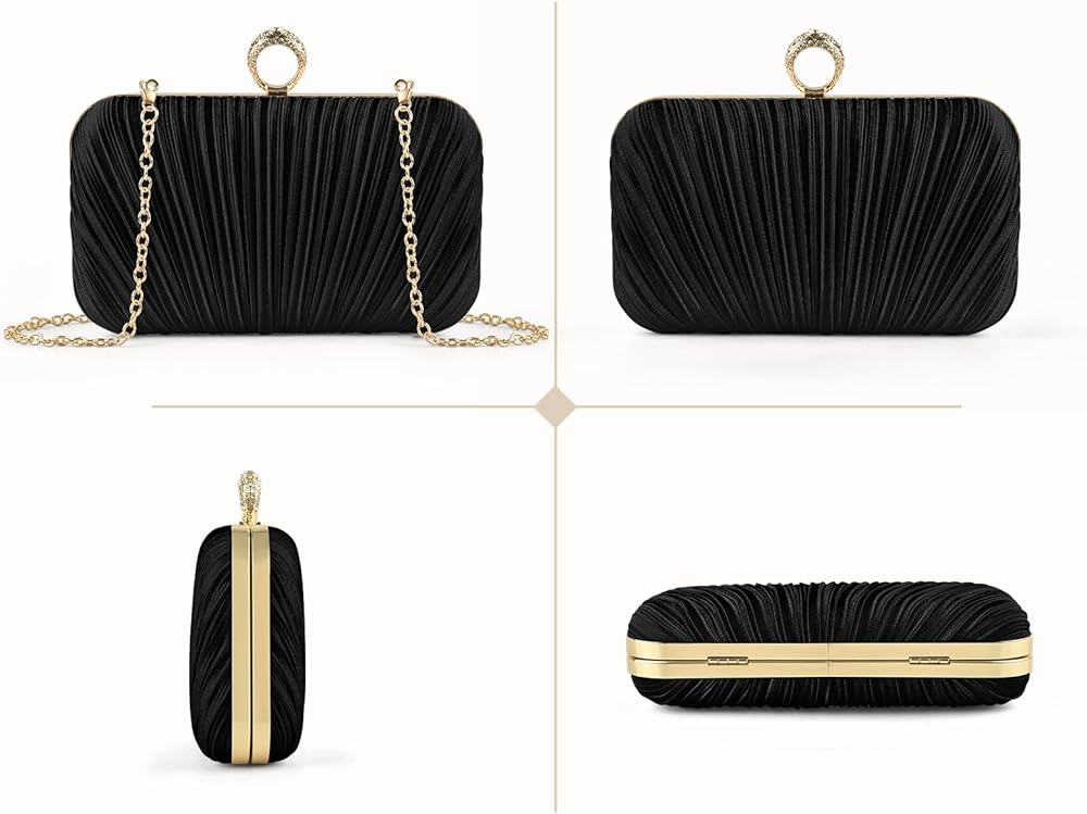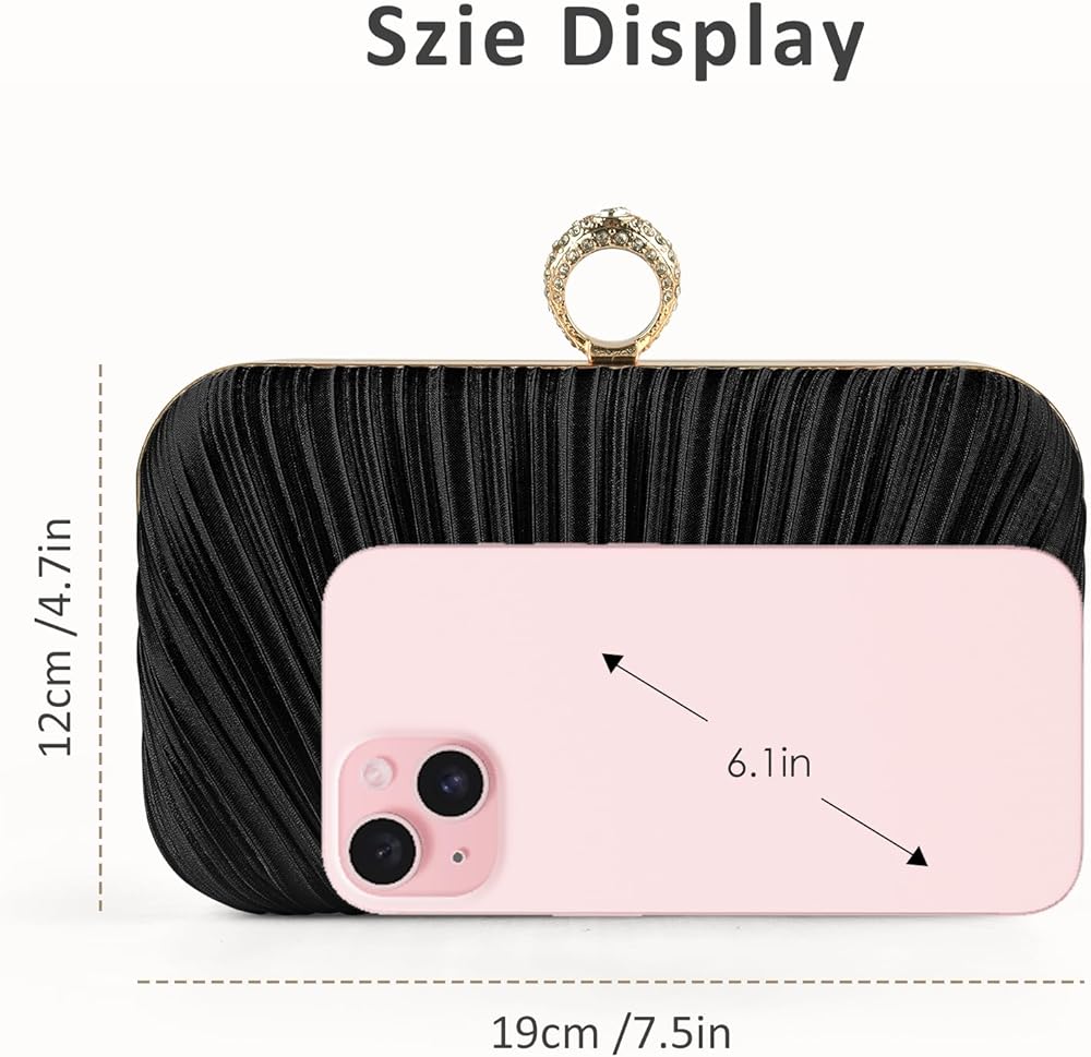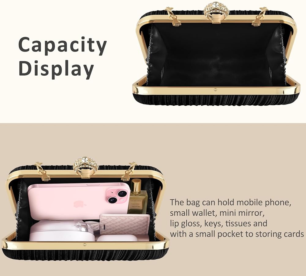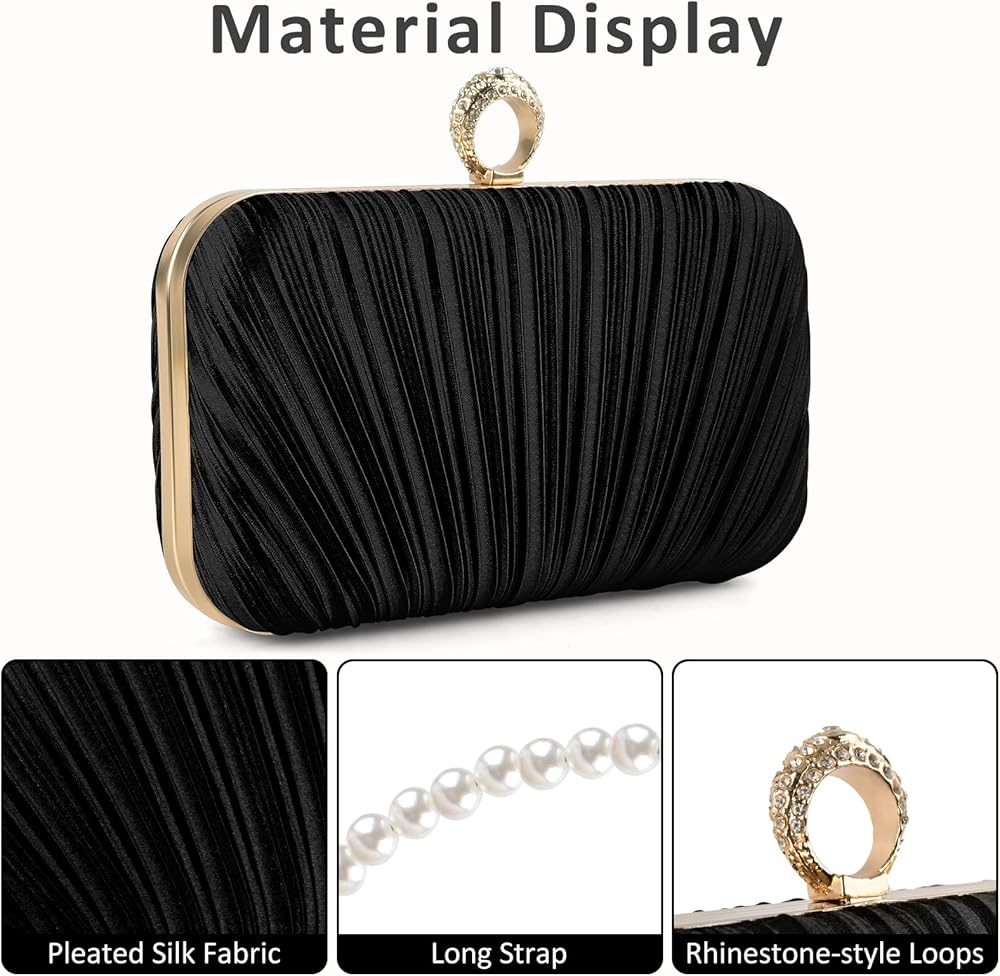 Material: This evening clutch is made of high quality pleated silk fabric and rhinestone-style loops with polyester lining to add a bit of class and elegance to your outfit