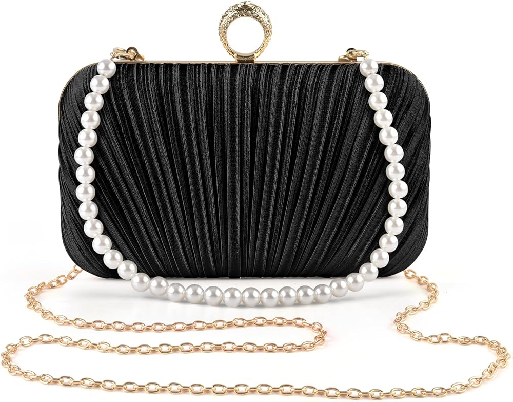 Clutch, Handbag or Shoulder Bag: Our evening bag comes with a detachable pearl chain and shoulder chain, both of which can be stored inside the bag, so you can use it as a clutch, tote and shoulder bag