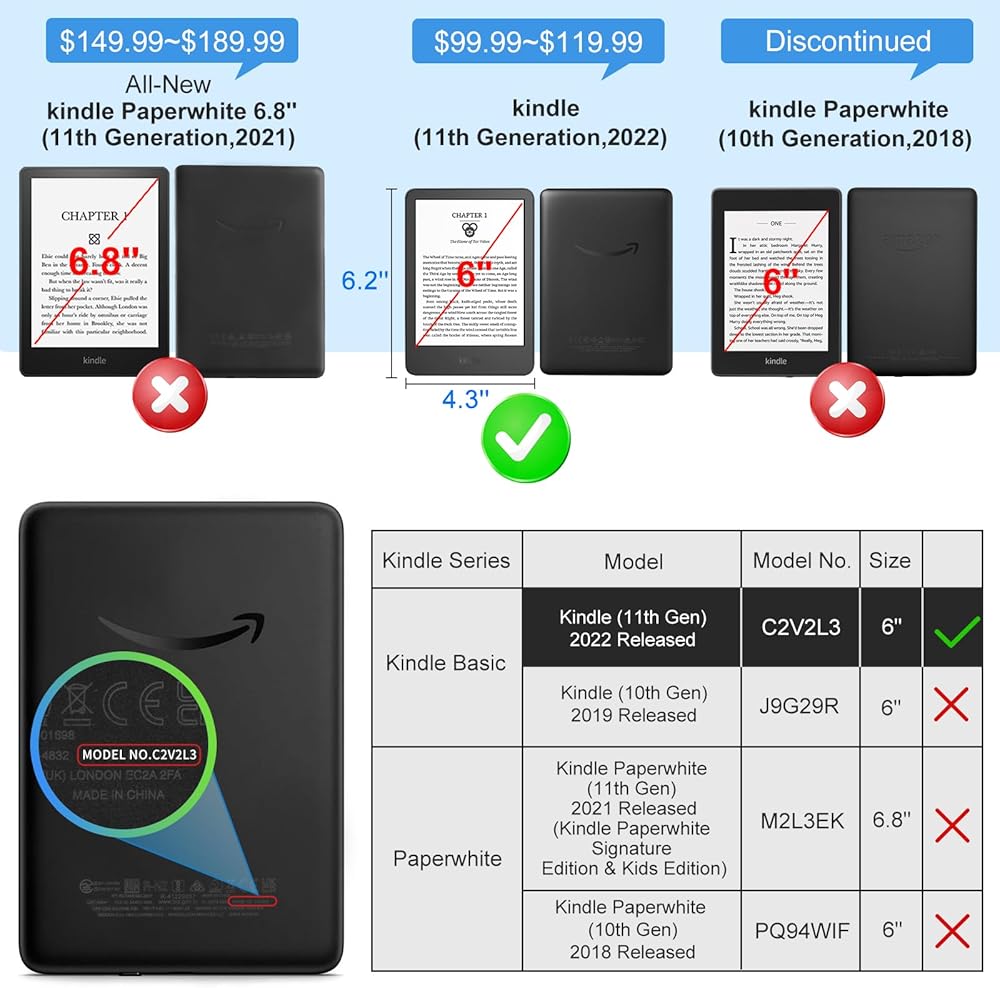 Fit: Perfect cutout and shape, ONLY compatible with Amazon All-New Kindle 2024 and 2022 (Gen 11). Note: this case do NOT fit any other Kindle models