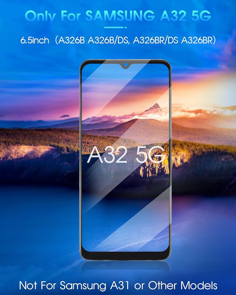 for Samsung Galaxy A32 5G LCD Screen Replacement: Our LCD screen replacement with frame for Samsung Galaxy A32 5G is only compatible withA32 5G A326u A326a A326w models. Please ensure that your cellphone model number matches before placing an order.