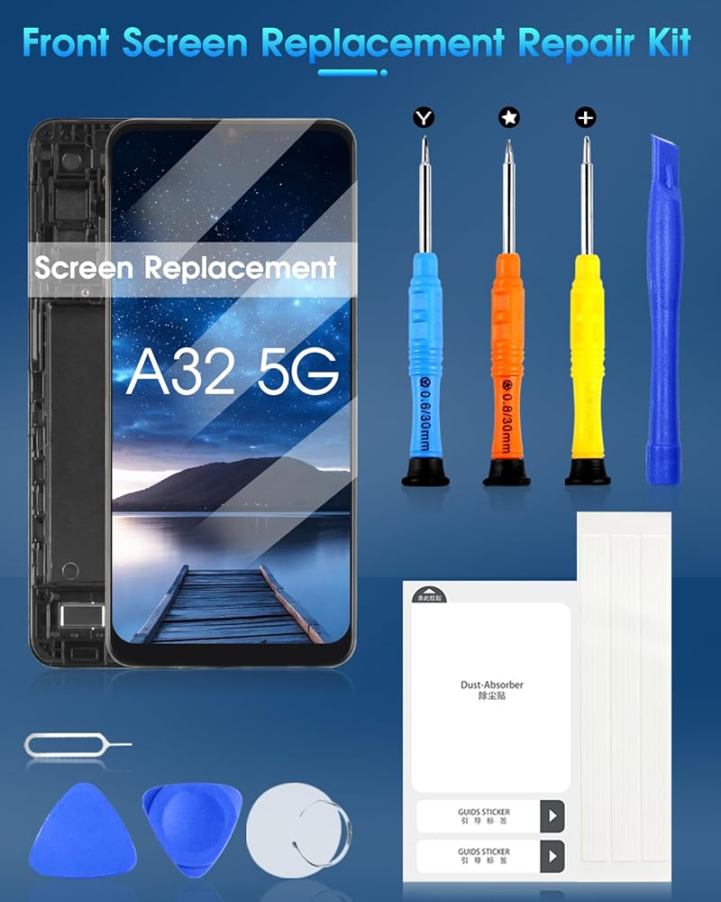 Package include: 1 * LCD screen replacement with frame for Samsung Galaxy A32 5G +1 * Repair Kit.
