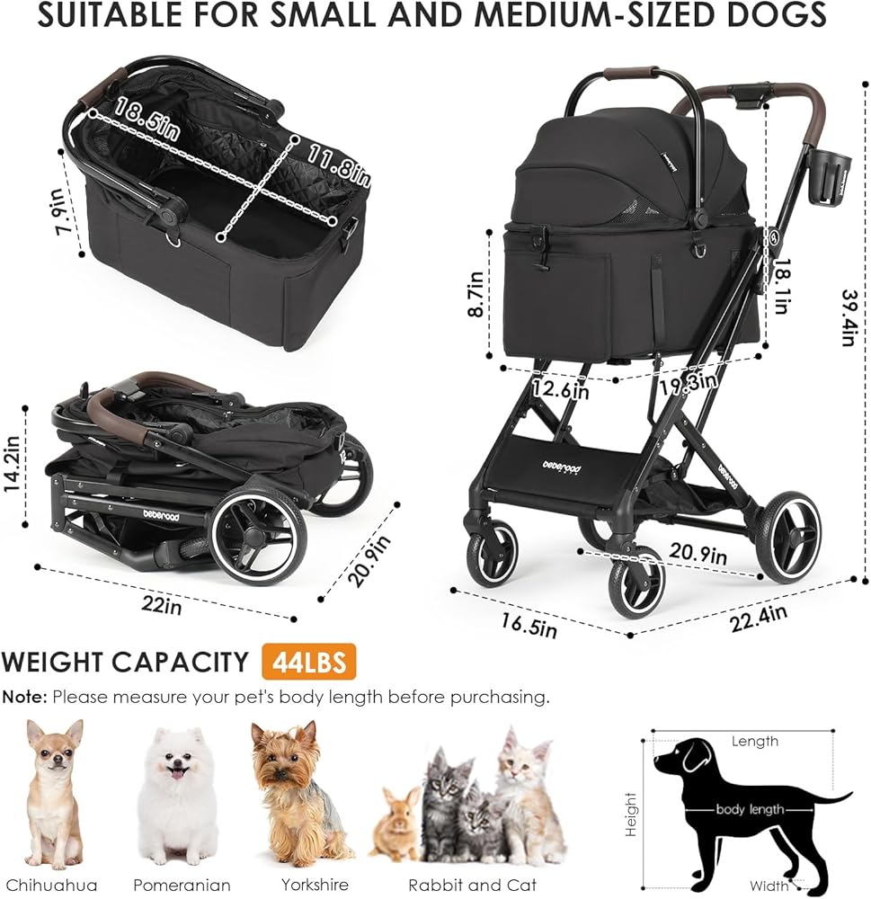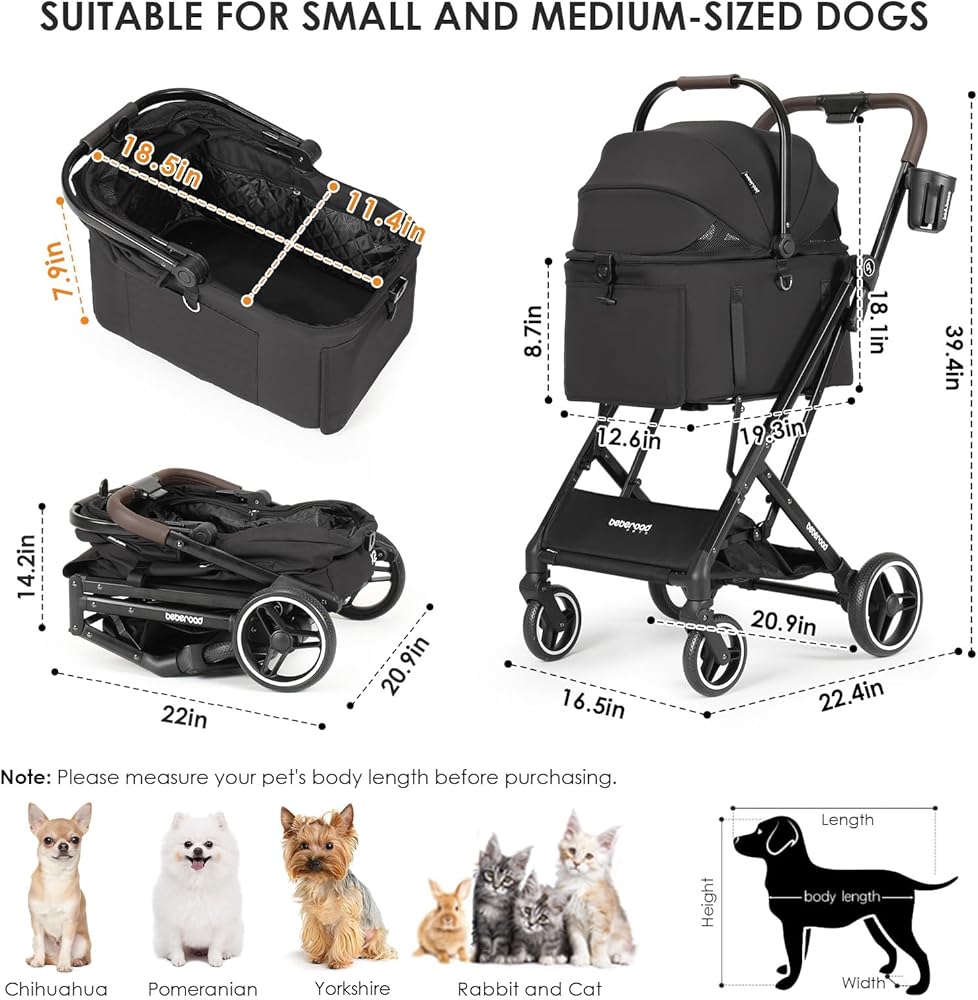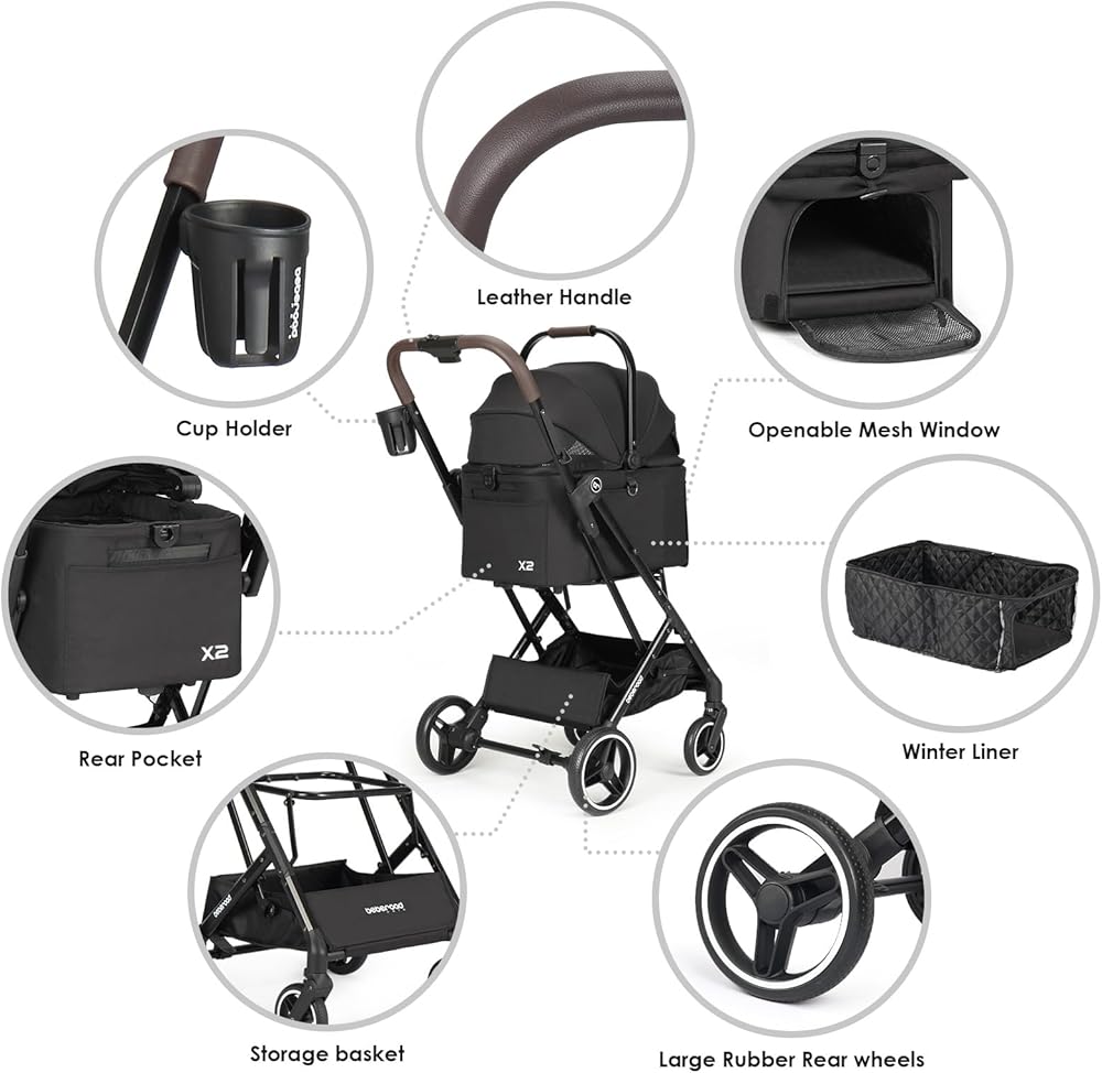 Beberoad Pets Multifunctional Pet Stroller - The X2 pet stroller can be used as both a cat stroller and a dog stroller, suitable for pets under 33 lbs.