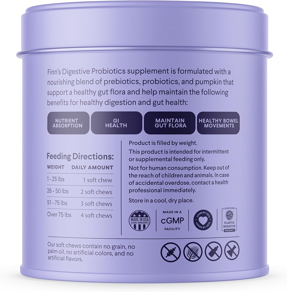Beneficial Probiotics | Each soft chew contains 6 different strains & 3 Billion CFU of live probiotics -- 'good' bacteria that aid in digestion and nutrient absorption, help improve bowel movement, and support overall immune health.