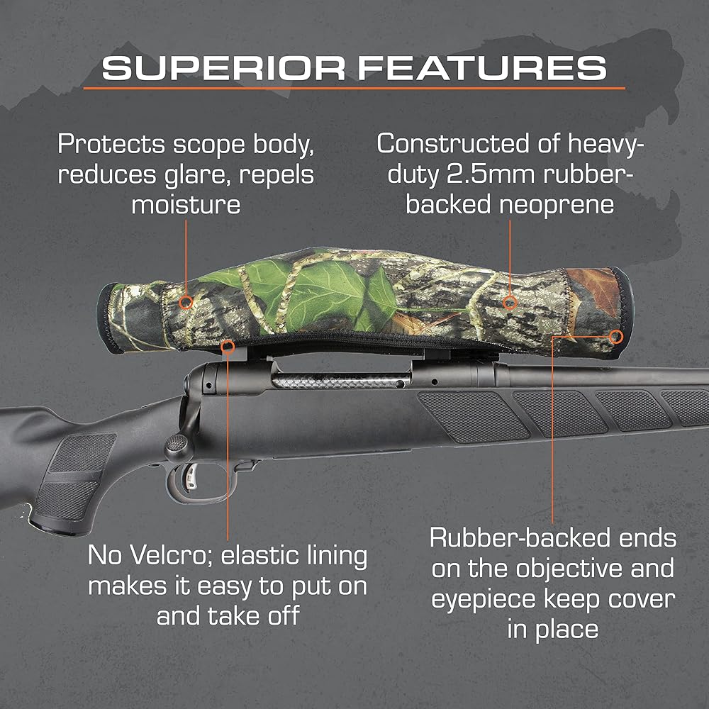 - Protects scope body, reduces glare, repels moisture