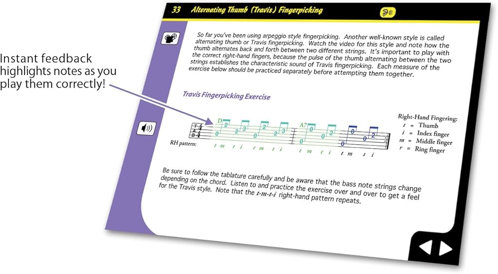 eMedia's Animated Fretboard showing fingerings for chords and notes played in the lessons.