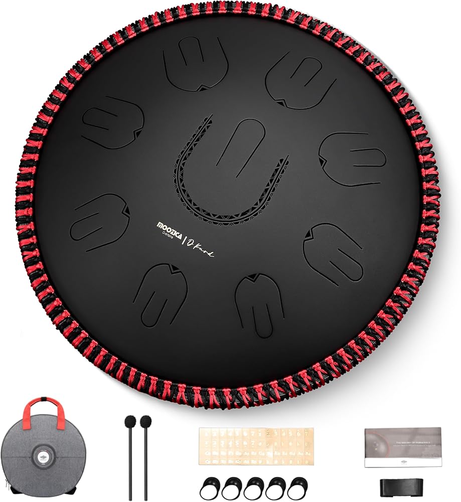 【Comes with all the accessories you need】The MOOZICA handpan comes with a carrying case, learning instruction booklet, drumsticks with wool cover, and finger tapper, providing everything you need to play and learn easily. With practice and experimentation, you can develop your own unique playing style on the handpan and create beautiful, expressive music.
