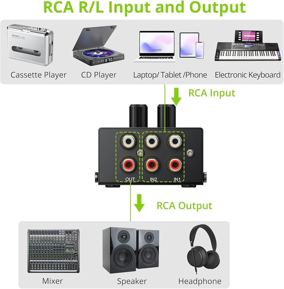 LiNKFOR Stereo Audio 2 Channel Mixer Mini Stereo Mixer,RCA Stereo Audio Mixer, Dual-Channel Audio Mixing for Computer, Gaming console, TV, CD player and Compatible with all standard RCA-equipped Devic
