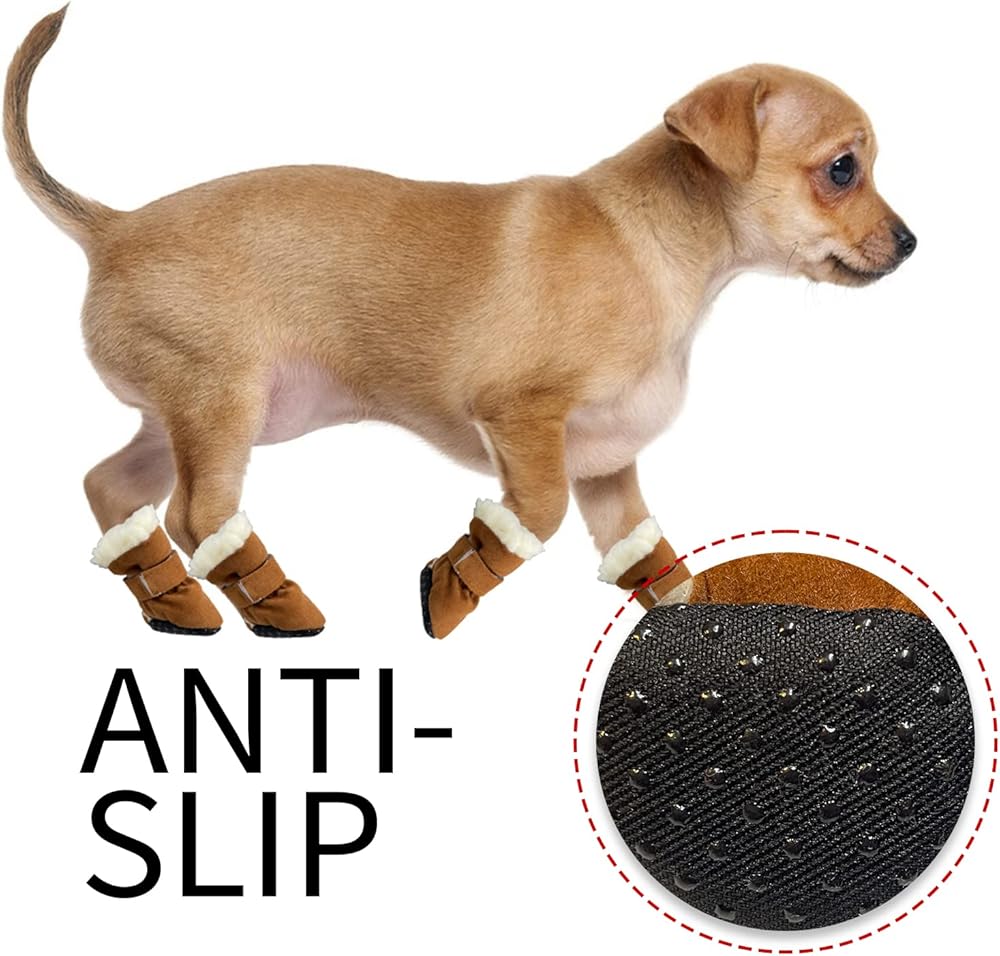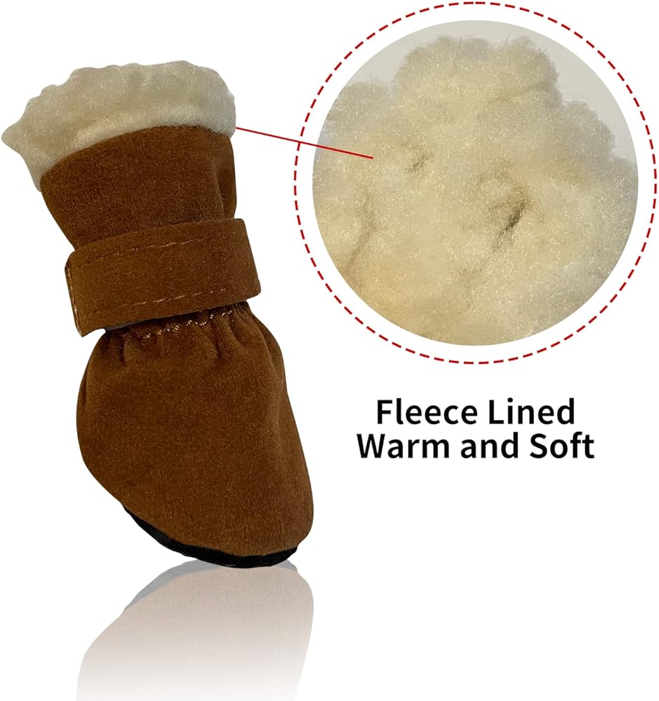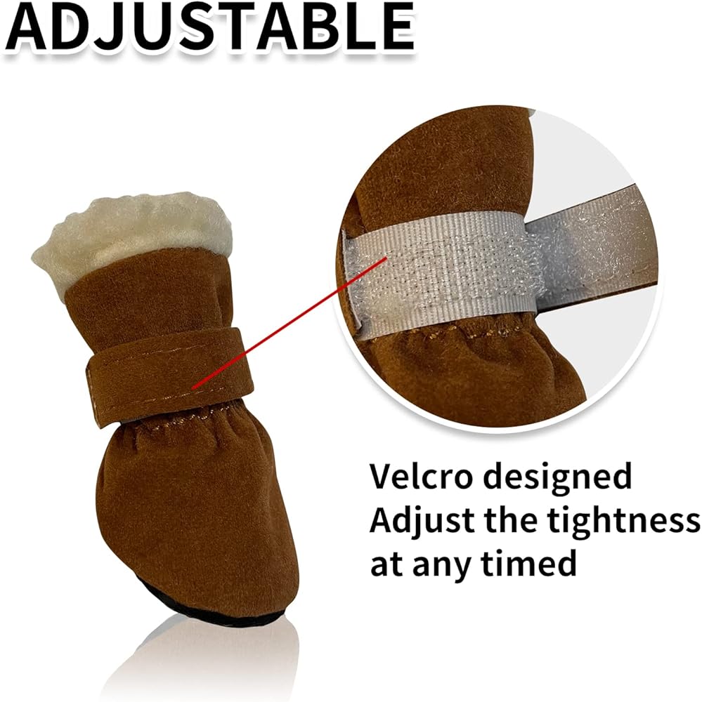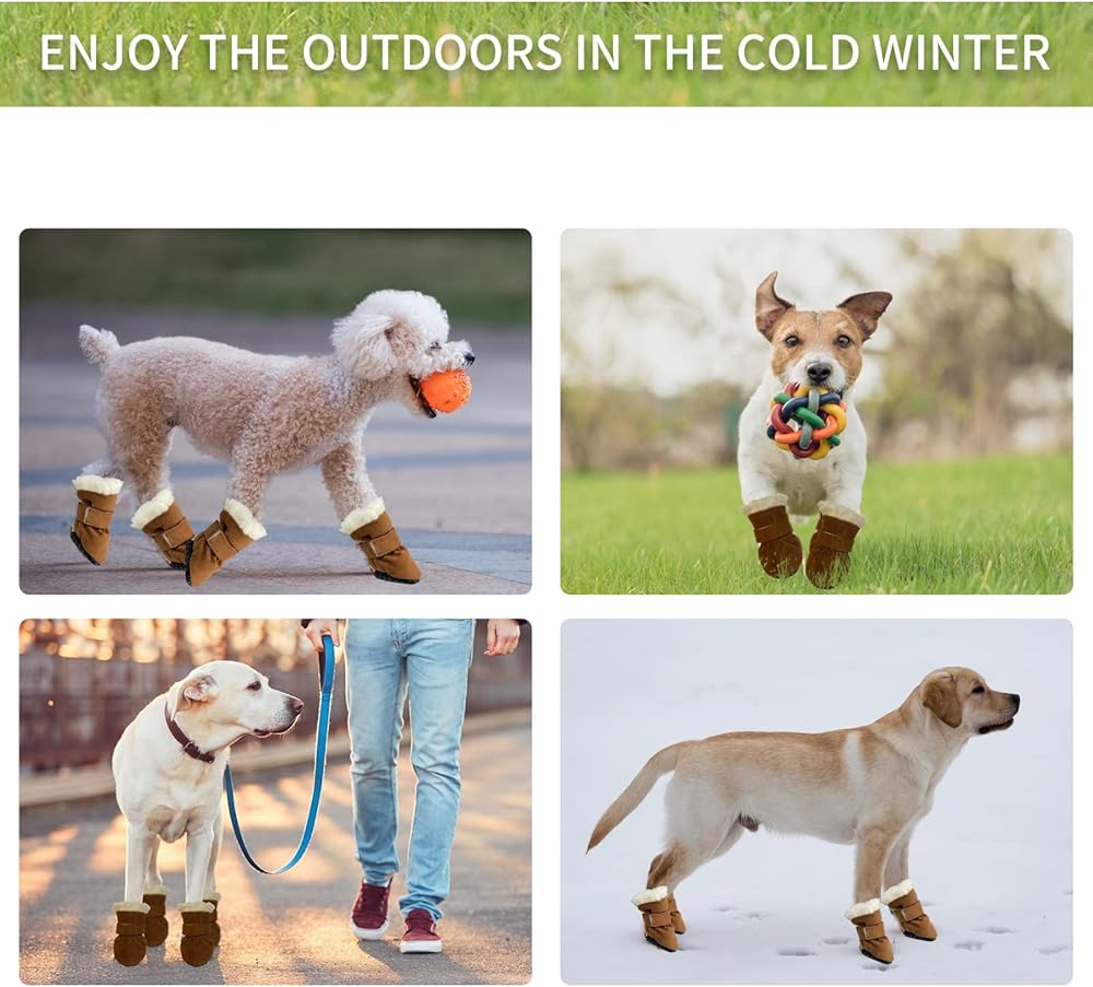 KEEP DOG WARM: Our dog boots are made of fleece lined, warm and soft. Bringing enough warmth to your dog while providing good comfort. Provides warmth for paws in the cold winter months. Your dog will be delighted with these dog shoes