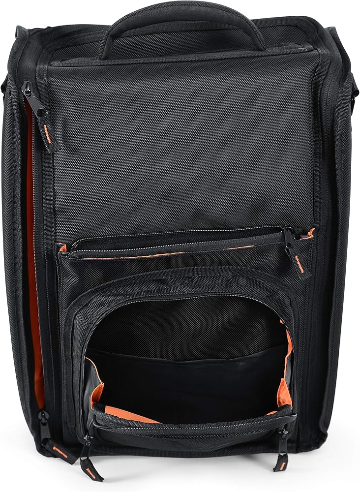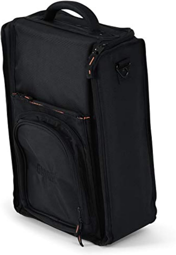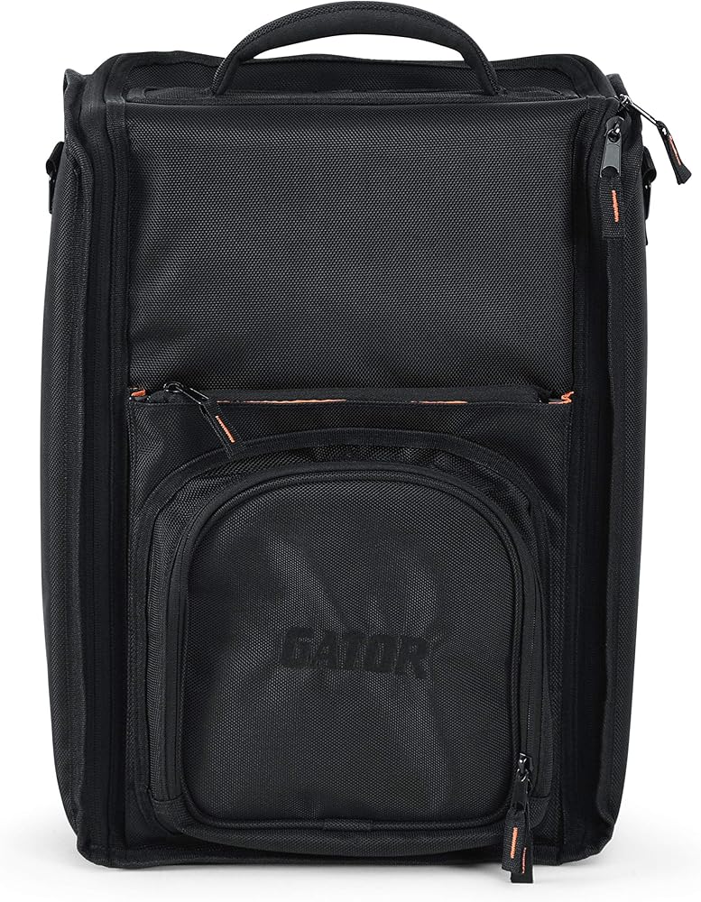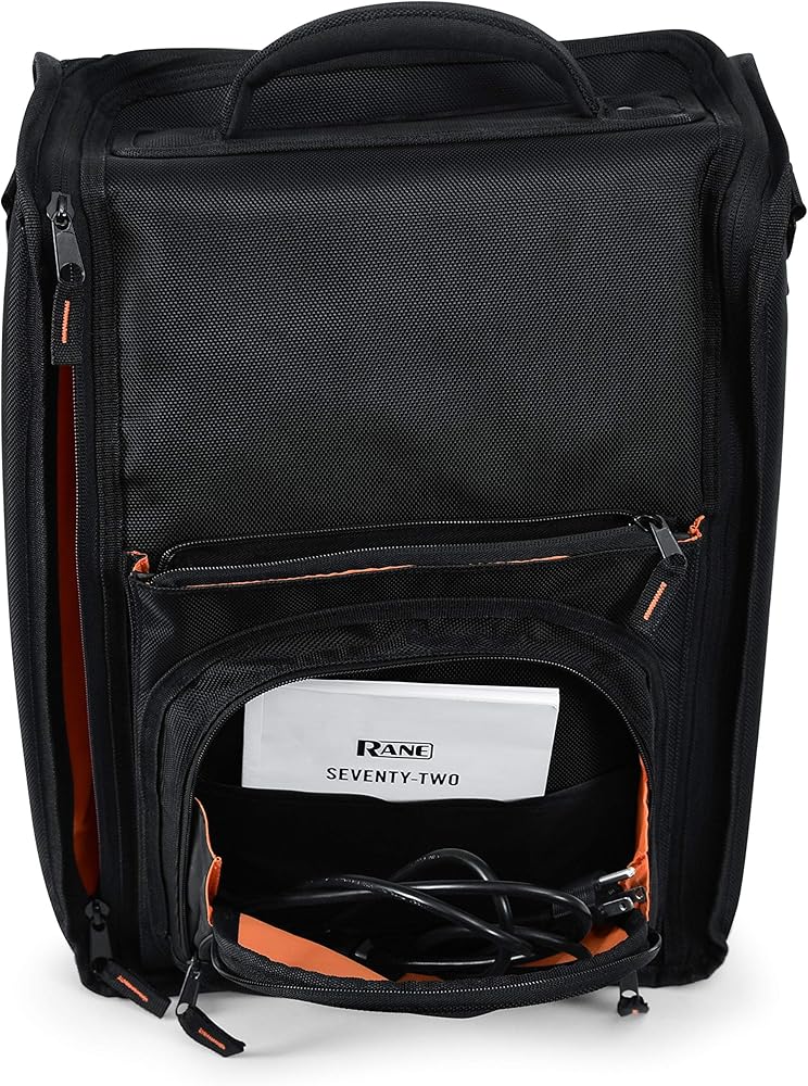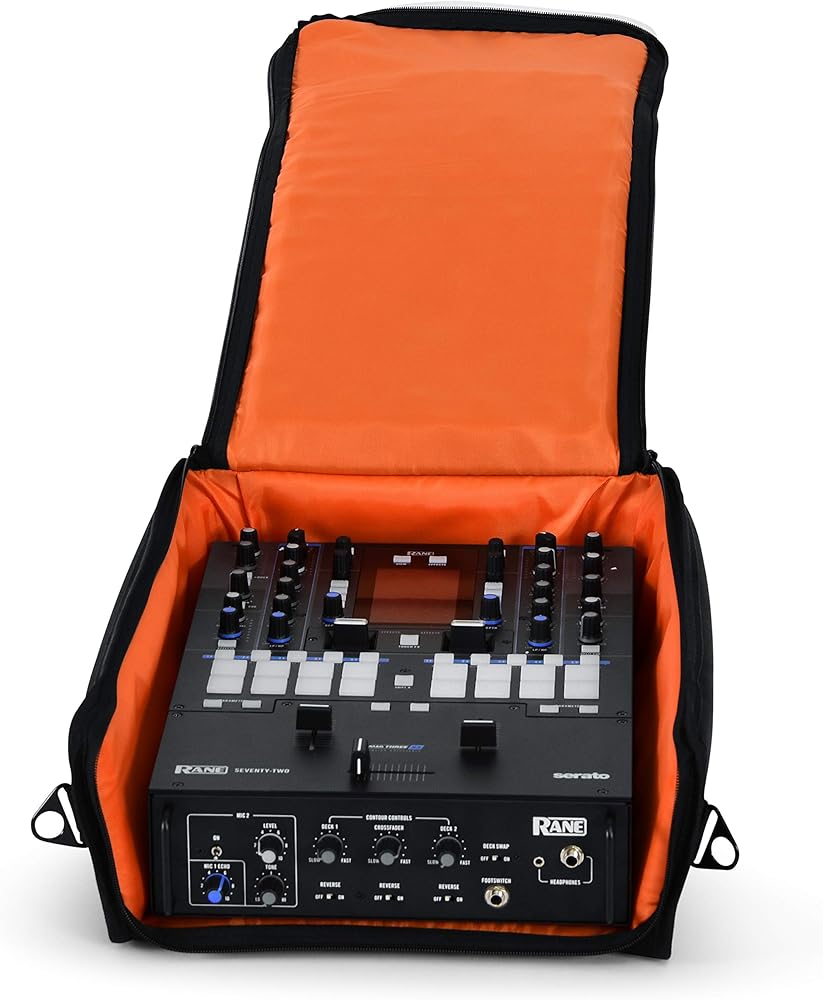 The GCLUBRN72 messenger style carrying bag securely houses your Rane SEVENTY-TWO 2-channel mixer by utilizing 1” Padding and internal foam blocks. A padded, removable shoulder strap and reinforced, soft grip carry handle make transporting your Rane SEVENTY-TWO safe and effortless. The GCLUBRN72 also includes a water resistant, nylon exterior to permit use during inclement weather. Similar to the Gclubcdmx12 bag, The GCLUBRN72 features a modern black exterior and an orange interior Lining for improved visibility in dark clubs or rooms. Interior dimensions: 17.50” (L) x 11.20” (W) x 4.25” (H)/ exterior dimensions: 18” (L) x 12.50” (W) x 6.25” (H).