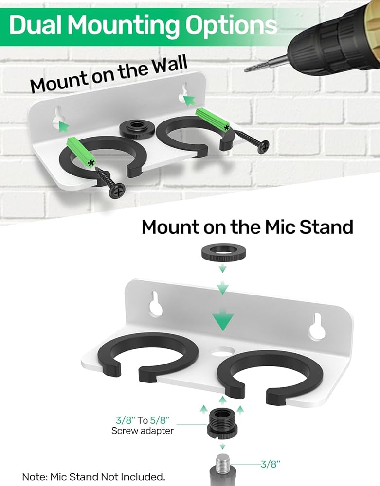 Borenbuir multi mic holder Wireless Microphone Holder for Mic Stand Wall Mounted Microphone Hanger Clip Double Hook Stands Holder Bracket Rack Clamp with Screws Microphone Accessories