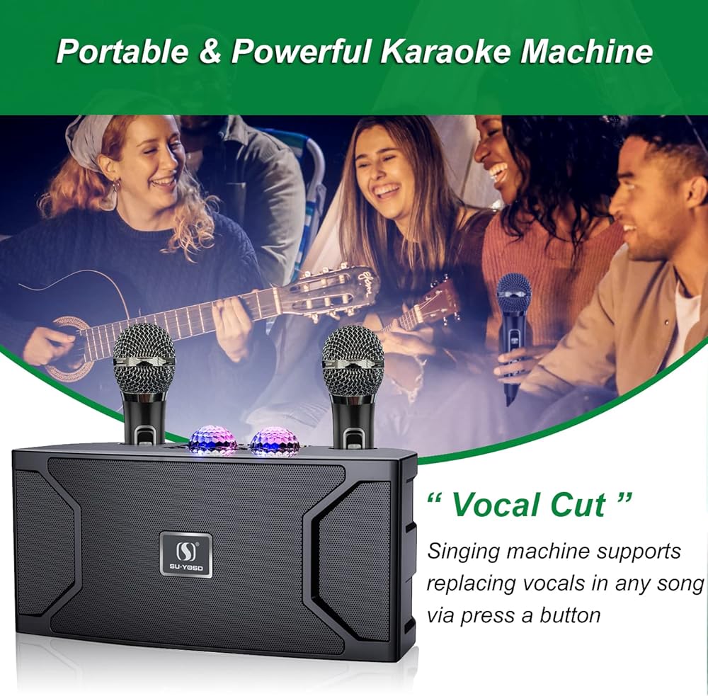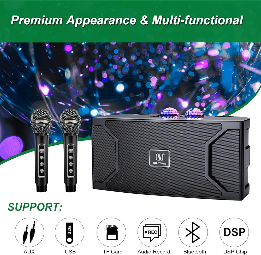 Karokee Machine with Bluetooth and 2 Wireless Microphone for Adults Kids, Portable Bluetooth Speaker Karaoke Machine Set Singing PA System with Disco Light for Xmas Party, Great Gifts for Boys Girls