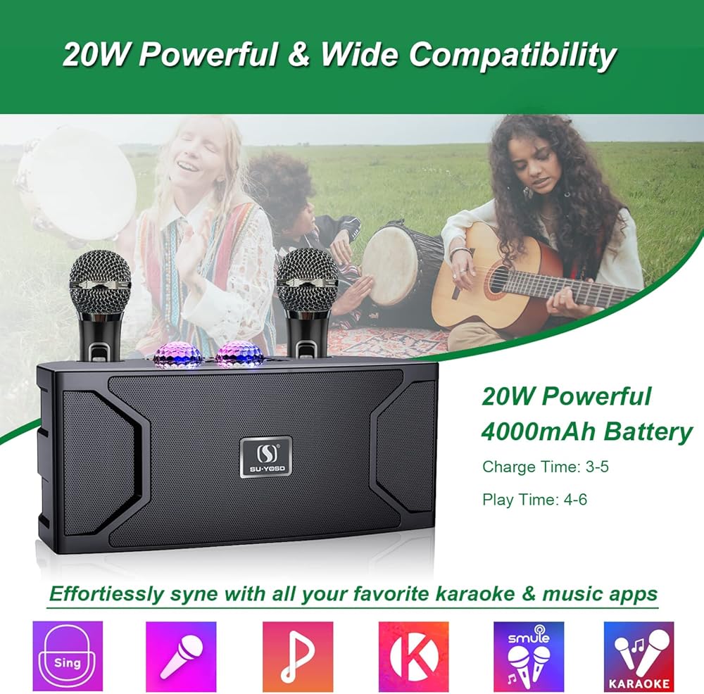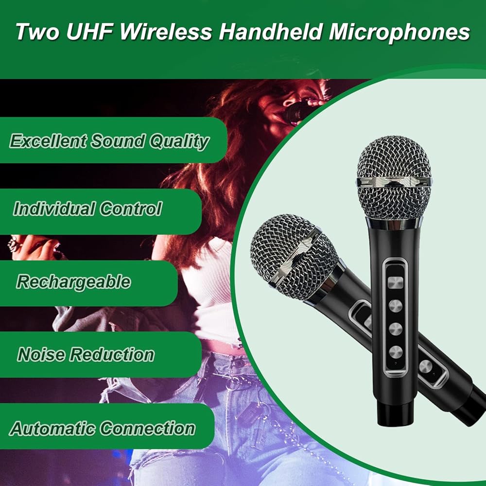 【Wireless Karaoke Machine Set】Portable Kareokee machine with Microphones, The wireless karaoke machine is designed with multi-function for full-range stereo sound reproduction. Enjoy your favorite music wherever you go - beach gym party or your home garden