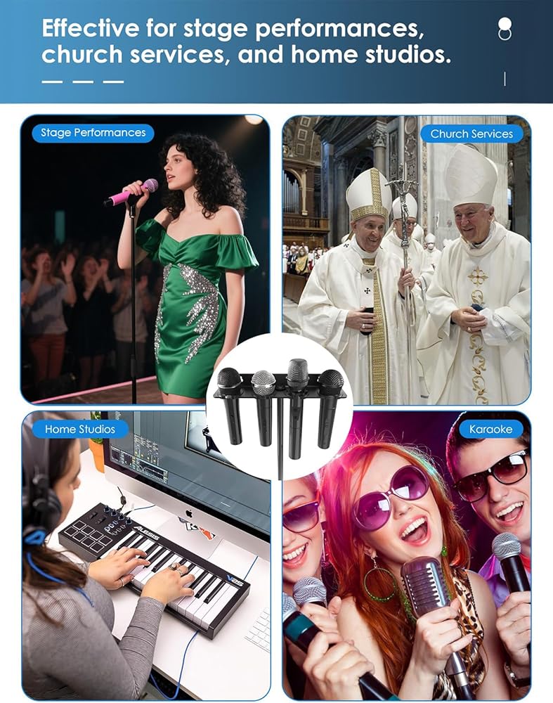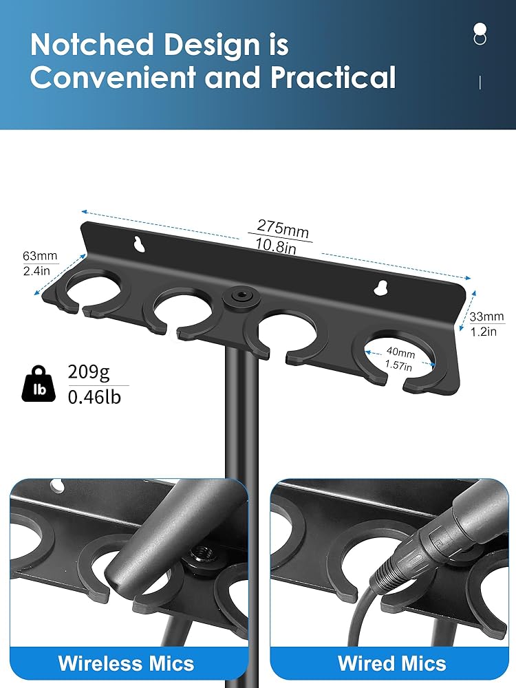 【Multiple mounting options】This multi-microphone holder, you only need one microphone stand Or you can attach the multi-mic holder stand to the wall to keep your microphones organized and ready to use. Eliminate the hassle of having your microphones scattered all over the place when not in use, and never have to look for a missing microphone again.
