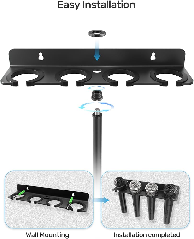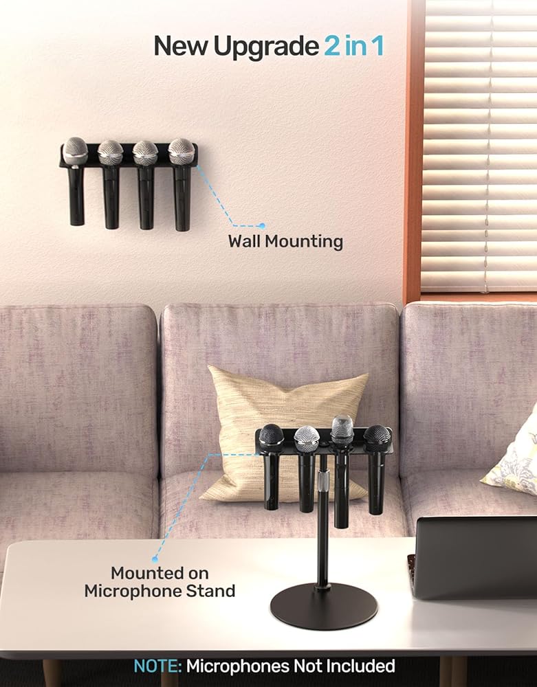 [Essential Accessory for Musicians] This stand is the perfect solution for performances, home studios, churches, or professional recording setups. It safely holds up to 4 handheld microphones—whether dynamic, wired, or wireless—making it ideal for musicians, church services, DJ, and karaoke enthusiasts.