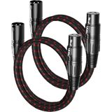 Long XLR Cables 50 ft 2 Pack, Nylon Braided XLR Extension Microphone Cable, OFC Shielded Balanced Male to Female Mic Cord for Preamp Recording Mixer Amplifie Speaker Black