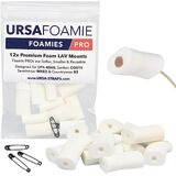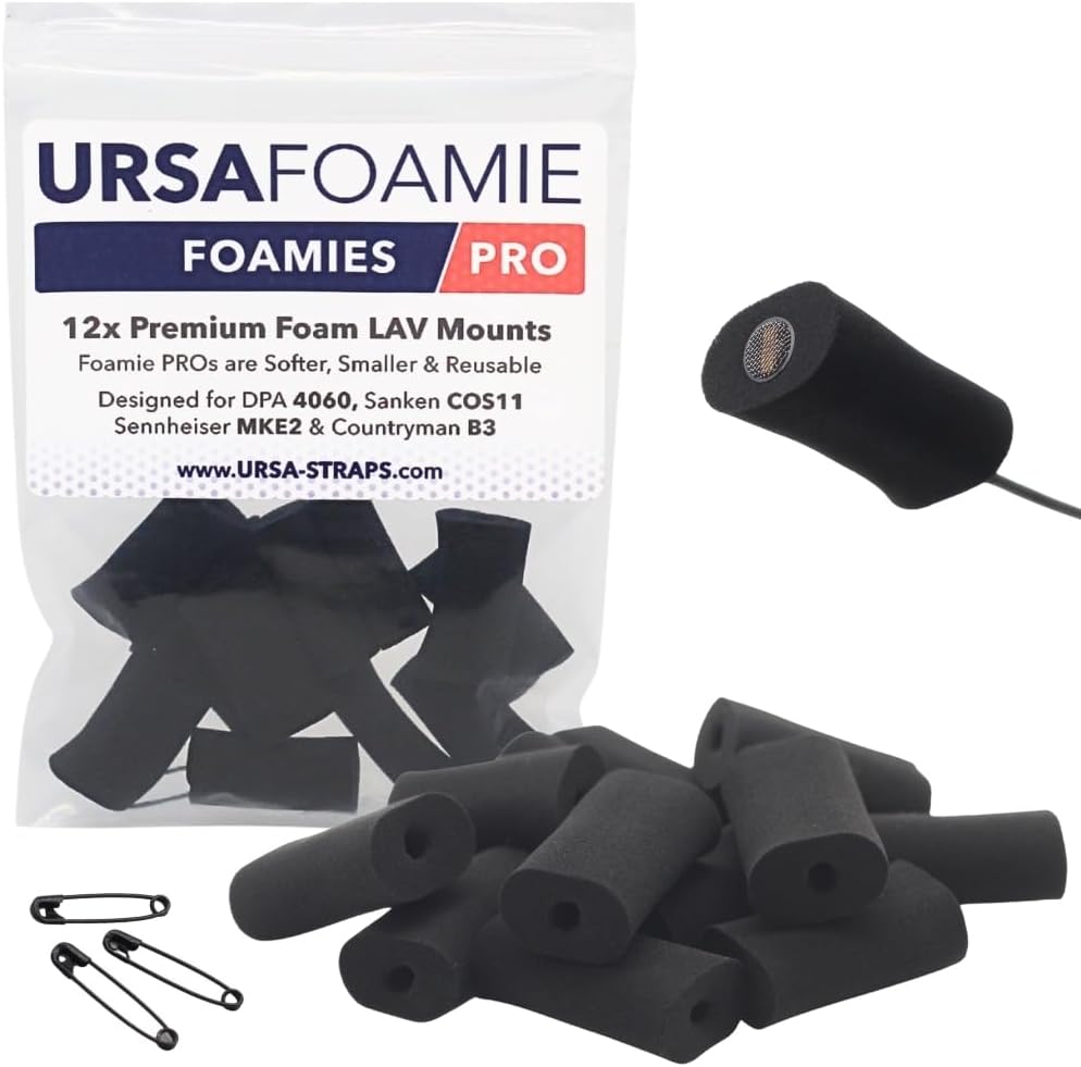 The Lavalier concealer foamies Measure 24mm in length, 17mm in width and 9mm tall with a 2.5mm diameter hole that stretches up to 6mm. (URSA Mini Foamies measure 22mm length, 14mm width and 7mm tall with a 1.5mm diameter hole that stretches up to 4mm)