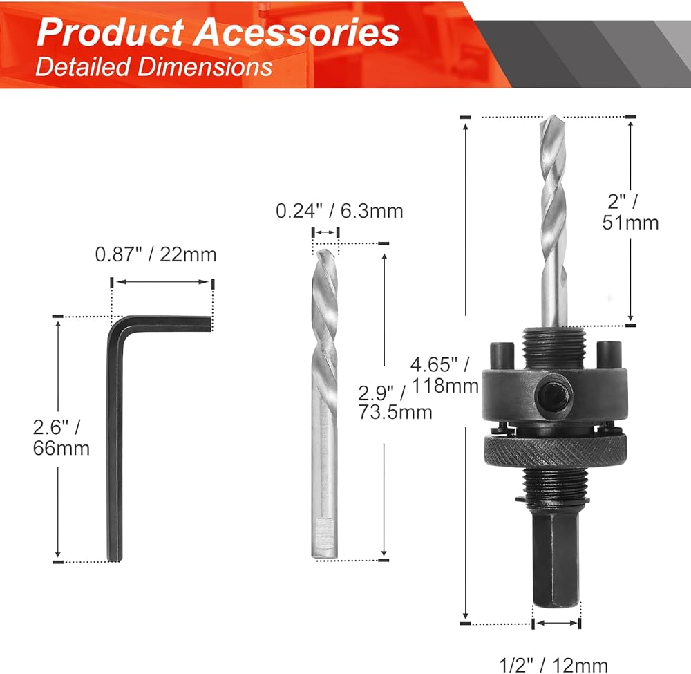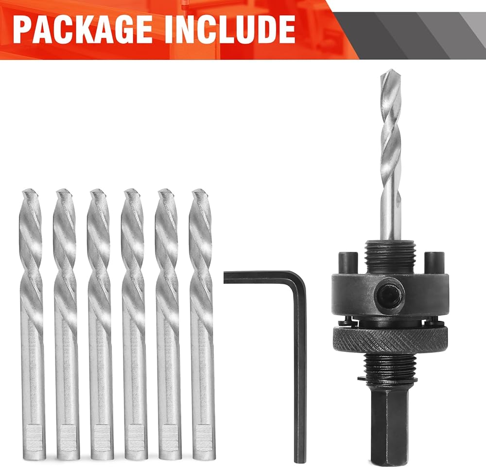 PACKAGE INCLUDED -- 1 x Hole Saw Arbor, 5 x Center Drill Bits, 1 x Hex Wrench. It can compatible with most hole saws.