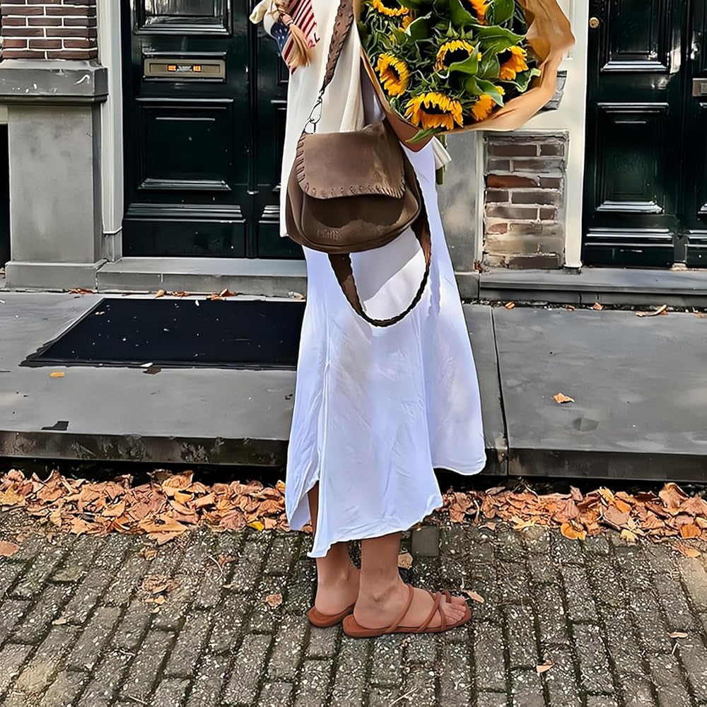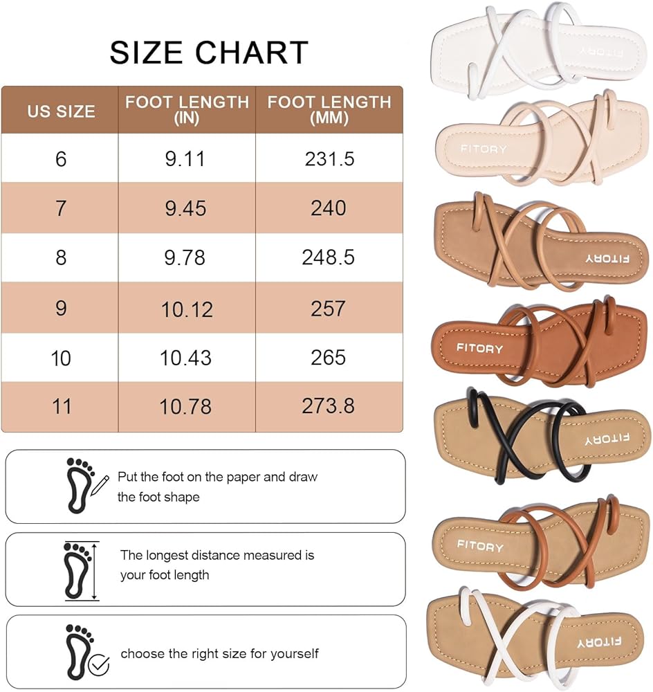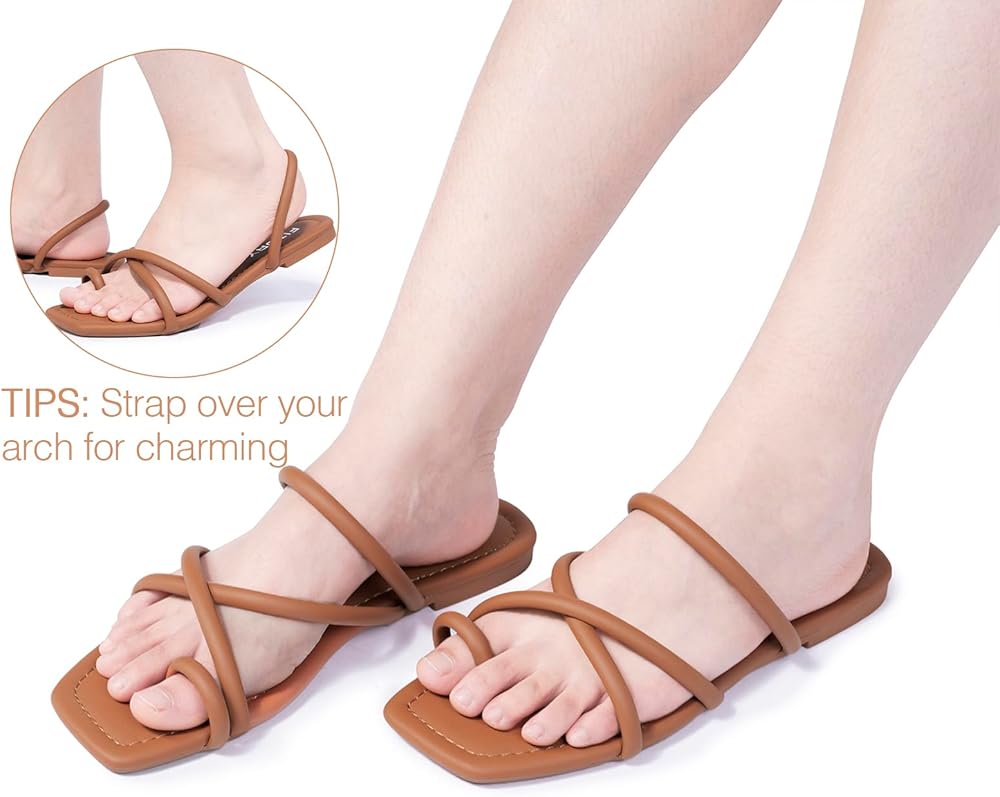 FITORY Women's Slide Sandals Flat Toe Ring Thongs with Cross Strap for Summer Size