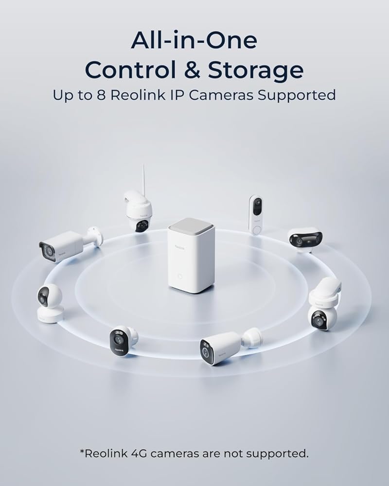 EXPAND YOUR SECURITY SYSTEM: Connect up to 8 Reolink IP cameras (excluding 4G models) to create a comprehensive, DIY surveillance network. Reolink Home Hub acts as your central storage, alarm, and management hub, keeping everything organized and accessible.