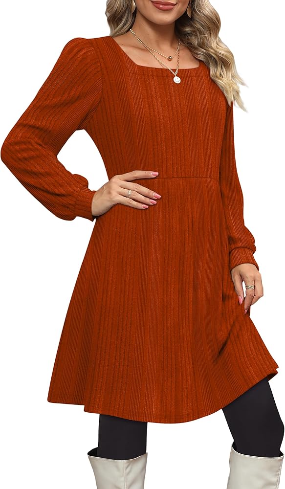 🍂𝐌𝐀𝐓𝐂𝐇𝐈𝐍𝐆: Knee length dress is easy to style with leggings, boots or a scarf to achieve a classic look. Wearing a necklace, the square neck will highlights the neckline and adds sparkle to your look.