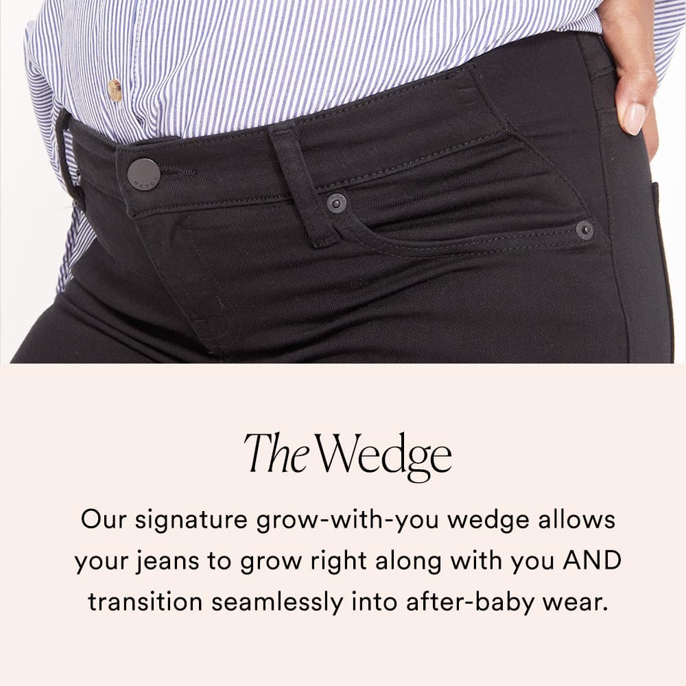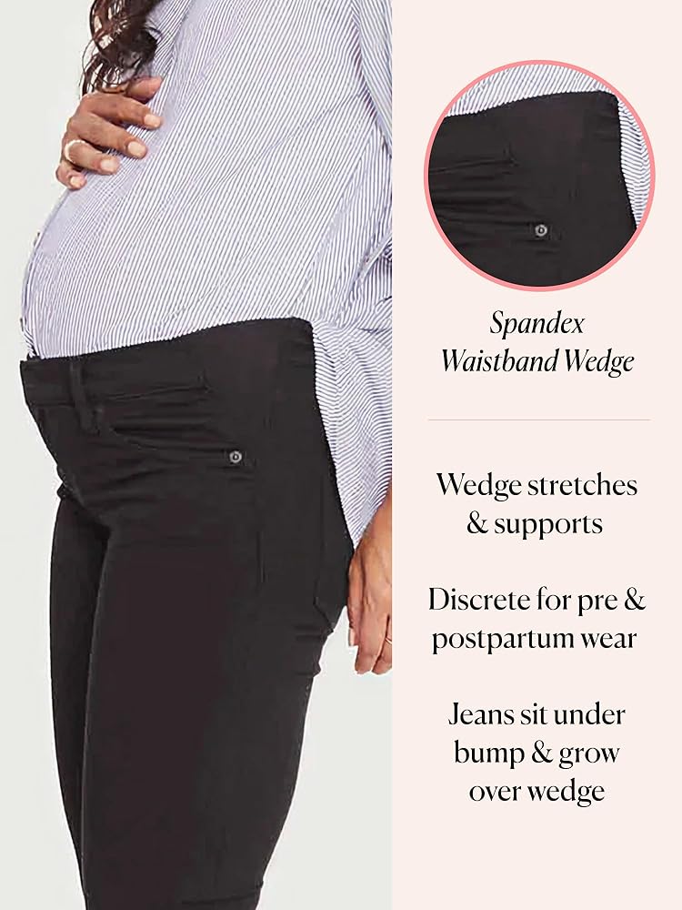COMFORT FOR EVERYDAY LIFE: Enjoy the ease and stretch of our recycled cotton blend maternity denim. Our signature grow-with-youwaistband to expand with your belly, gently hugging your curves through each trimester.