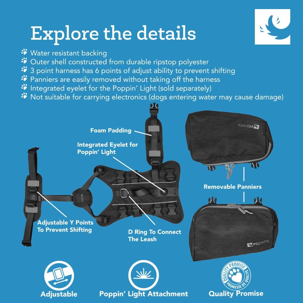 The Quest Day pack is a comfortable and durable day pack for dogs. Use the harness on it's own or attach the panniers to carry all your essentials plus water and your dog's favorite toy on city walks and day hikes.