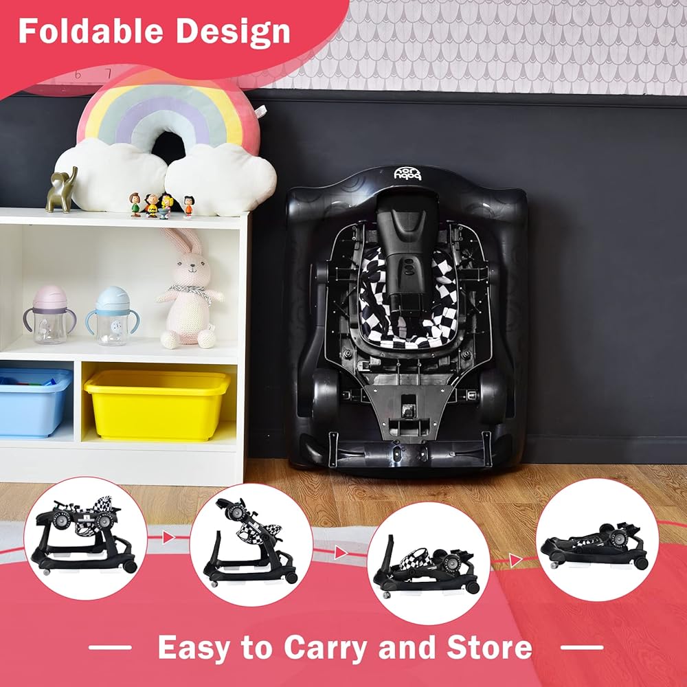 【Easy Assembly & Folding】 This baby activity walker is easy to assemble and does not require any tools. A detailed assembly video is available on the product detail page for reference. After use, it can be easily folded for convenient storage, taking up minimal space. It can be stored under the sofa, bed, or in the trunk of a car.