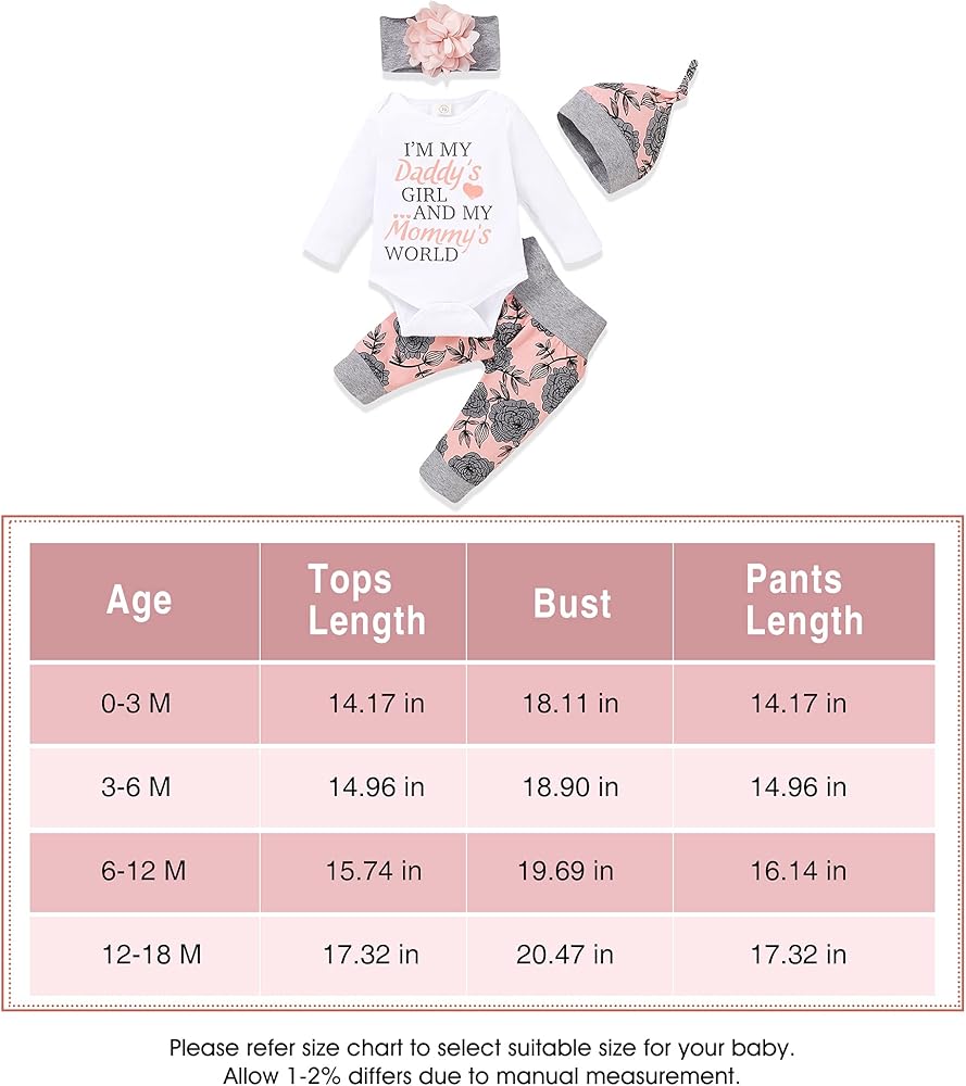 Unique Designs---Snap up top for easier diaper changes, delicate and stylish flower pattern and "I'M MY Daddy's GIRL AND MY Mommy's WORLD" words designs, this baby girl pants set will bring your little one happiness and she will get lots of compliments and won't want to take it off.