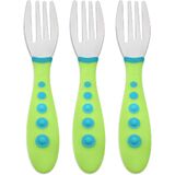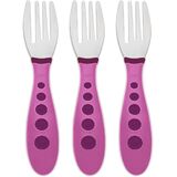 The Gerber Graduates Kiddy Cutlery Fork Set will help you teach your little one to feed himself or herself with ease. The Kiddy Cutlery Fork Set includes (3) forks with soft, comfort-grip handles that are designed for a toddler's small hands. The rest easy support helps keeps germs off the utensils and mess off the table! Durable, stainless steel tips. Dishwasher-safe and BPA-free. These forks come in neutral colors and are designed for children 18-months of age and older. The NUK family of brands designs safe and fun products that encourage your baby's development. NUK is committed to nurturing your children's healthy transitions from birth to toddler and has worked for over 50 years to design high quality, innovative products that are scientifically proven to support safe and healthy development.