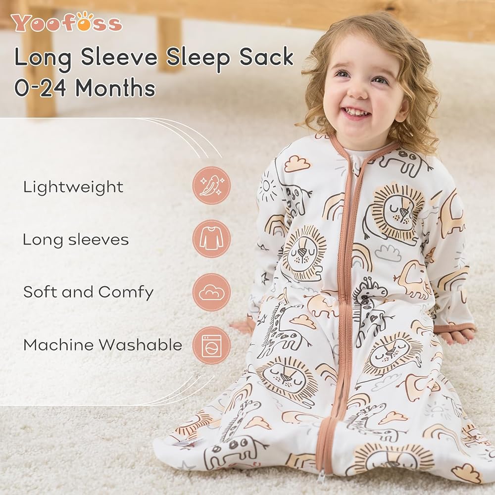 Softness and Warmth - Yoofoss baby sleep sacks made with 2 layers, plush fabric and 100% cotton Lining, super soft and smooth, ensure baby's warmth and a cozy embrace. 1.5 TOG sleep sack is suiable for moderate temperatures from 69 to 73°F as an ideal option for autumn,early winter and spring or taking a nap in air-conditioned rooms during the summer, keeping your baby snug and warm.