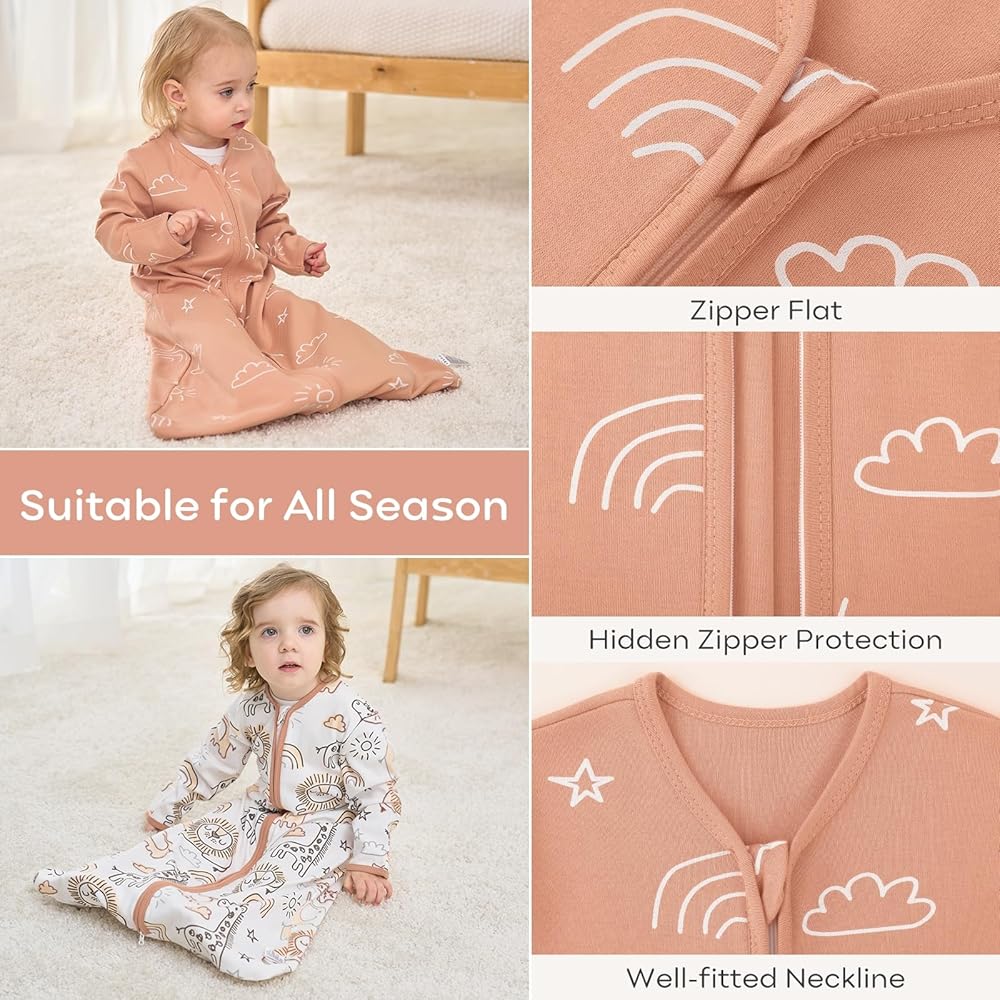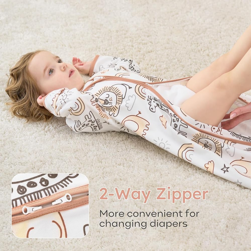 Hidden 2-way Zipper - Hidden zipper and neckline design to avoid any potential scratching baby's delicate skin. Double zipper allows for effortless dressing and making nighttime changes easier. The high-grade zippers of sleep sacks for baby glide smoothly without getting stuck or jammed, easily open and close.