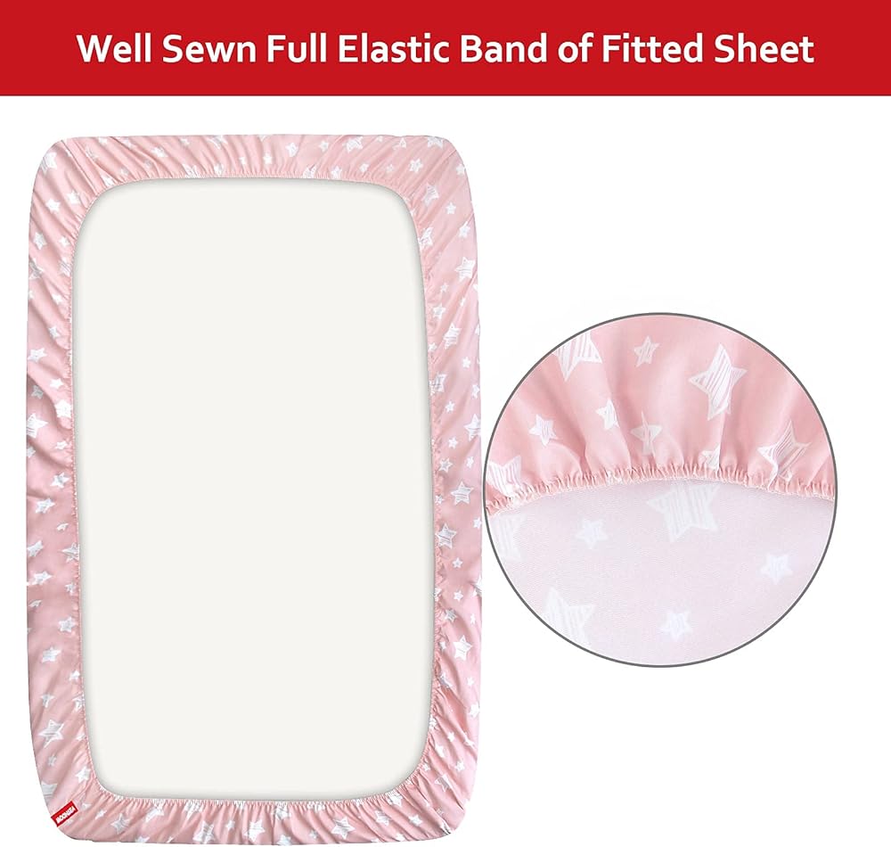 Product Fabric: 100% Microfiber polyester, ultra soft, breathable, lightweight toddler sheet set, after washing resistance to shrinking and wrinkles, silky and exceptionally soft, bring soft and cozy feel to your baby bed with our microfiber bedding set.