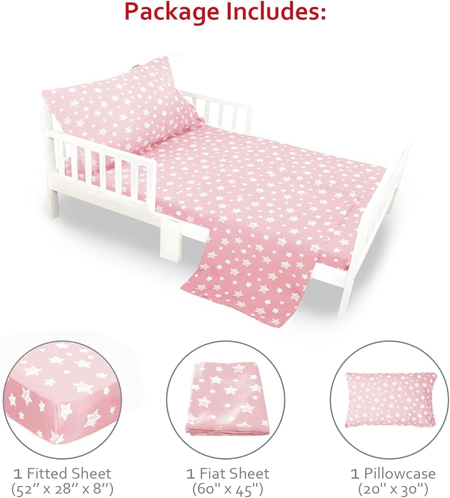 Soft, Cozy and Colorful: Toddler bed sheets with ultra-soft microfiber star print fabric, they are perfect for any room style. Fabulous selection of colors providing a relaxing dream sleep environment for your little one.
