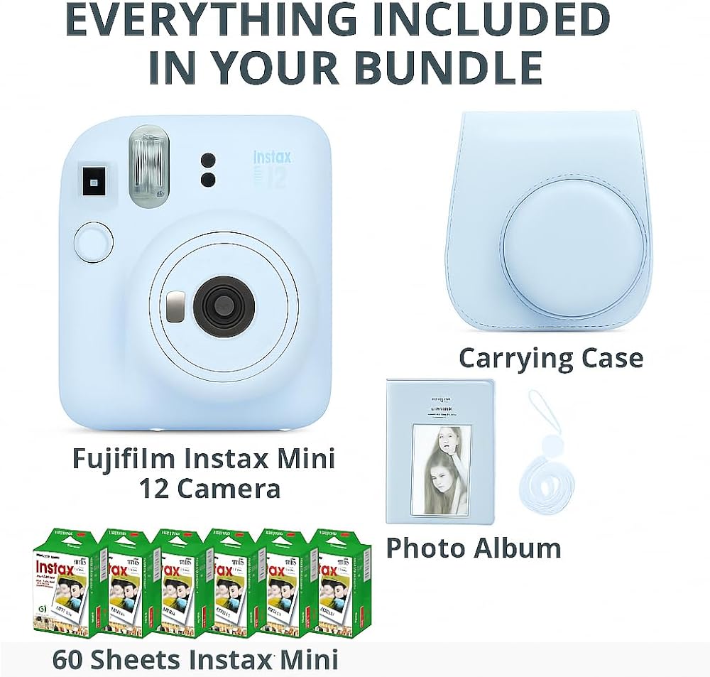 fujifilm instax mini 12 camera + instant mini film (60 sheets)