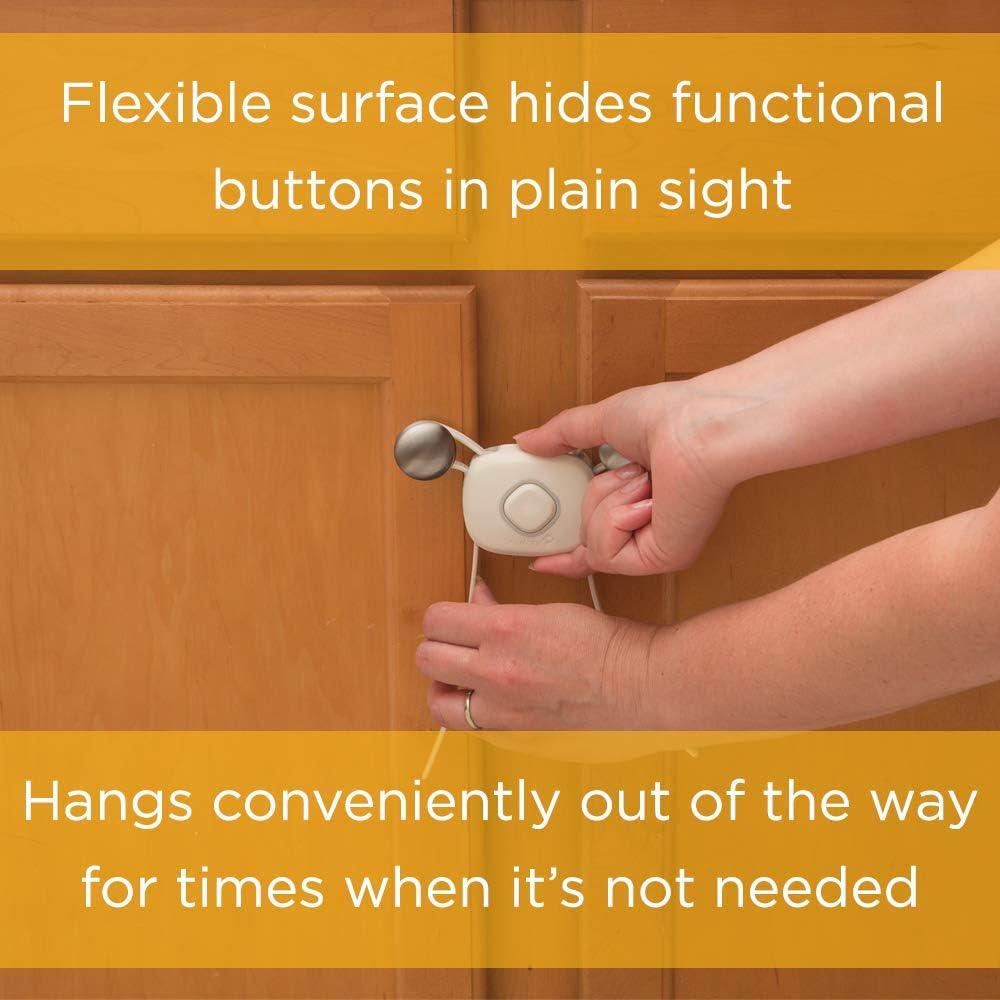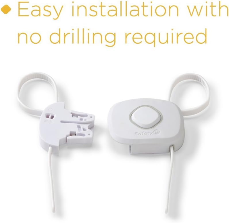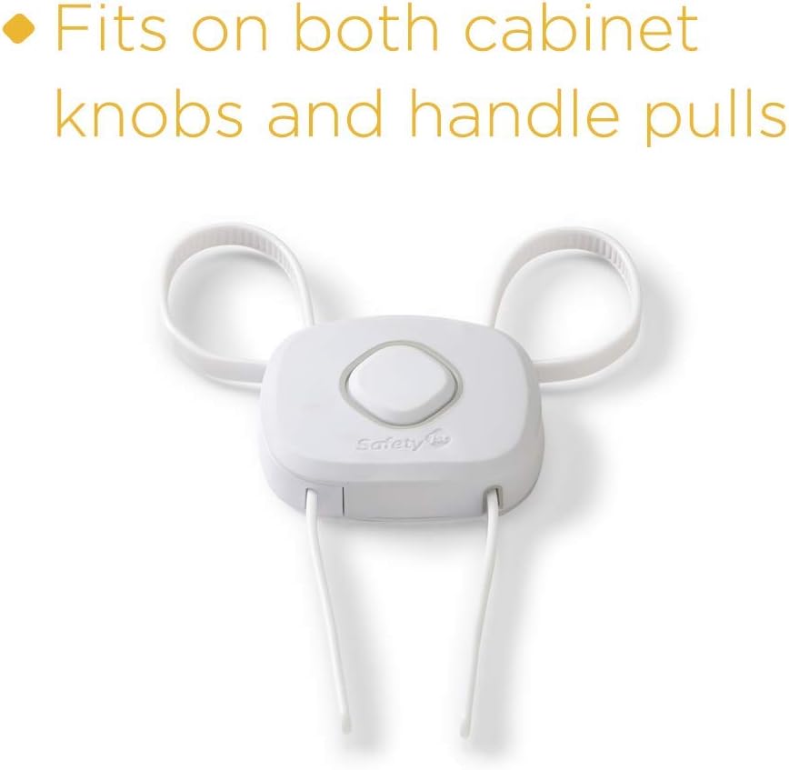Curious kids try to get into anything and everything, but the Safety 1st OutSmart™ Flex Lock helps you keep them out with the first ever decoy button. Your child will think that the decoy button opens the lock, but pushing it has no effect. You'll know that the flexible surface hides the actual secret to opening the lock. It installs easily with no drilling required. The adjustable straps let you get a customized fit for cabinets with hardware up to 8 inches apart and can be used on cabinets with either knobs or handle pulls. For periods of non-use, this cabinet lock hangs conveniently out of the way, but stays close for when it's needed again. In side by side comparisons with leading competitors using real life toddlers, the Safety 1st Outsmart Flex Lock was strong enough to keep even the cleverest of toddlers out. Even in lab testing using state of the art mechanical pull force equipment, Safety 1st outperformed the competition. Toddler Tested. Proven Stronger. This is a 4 pack.