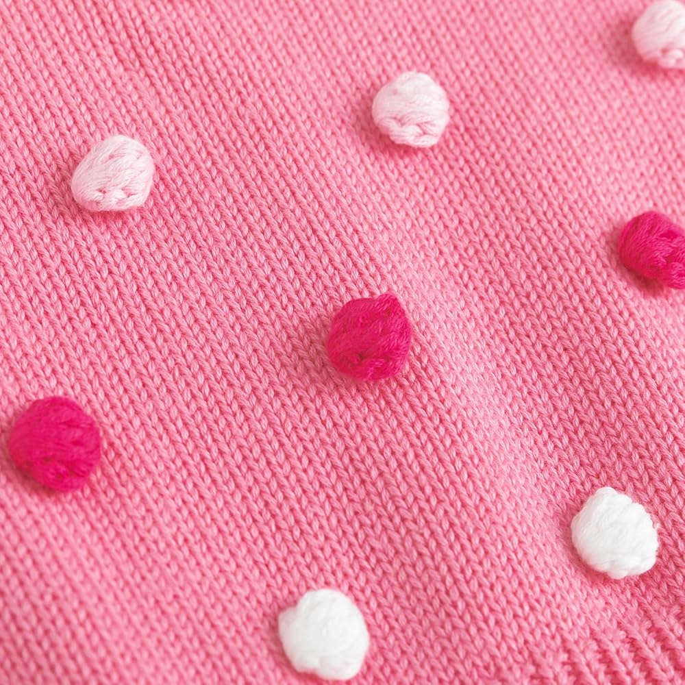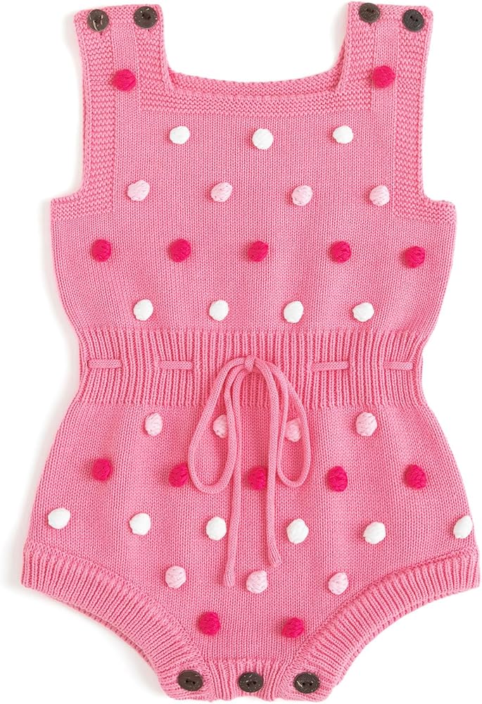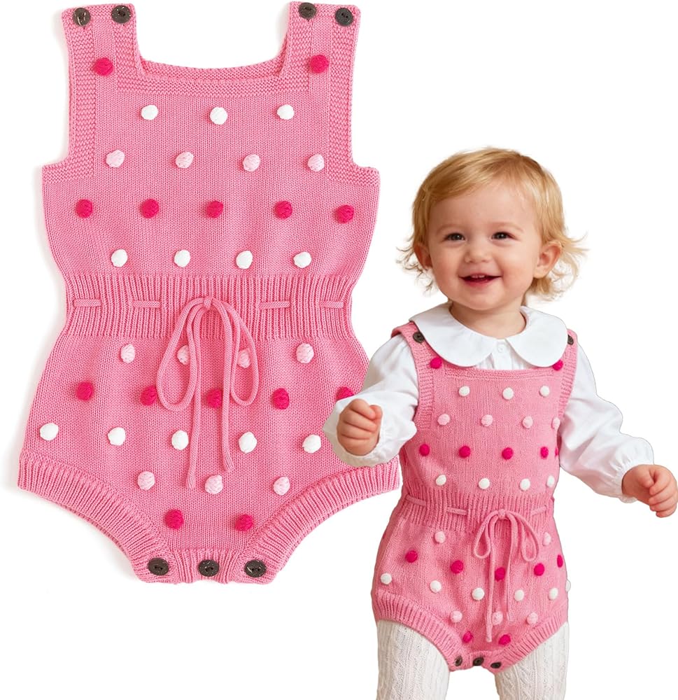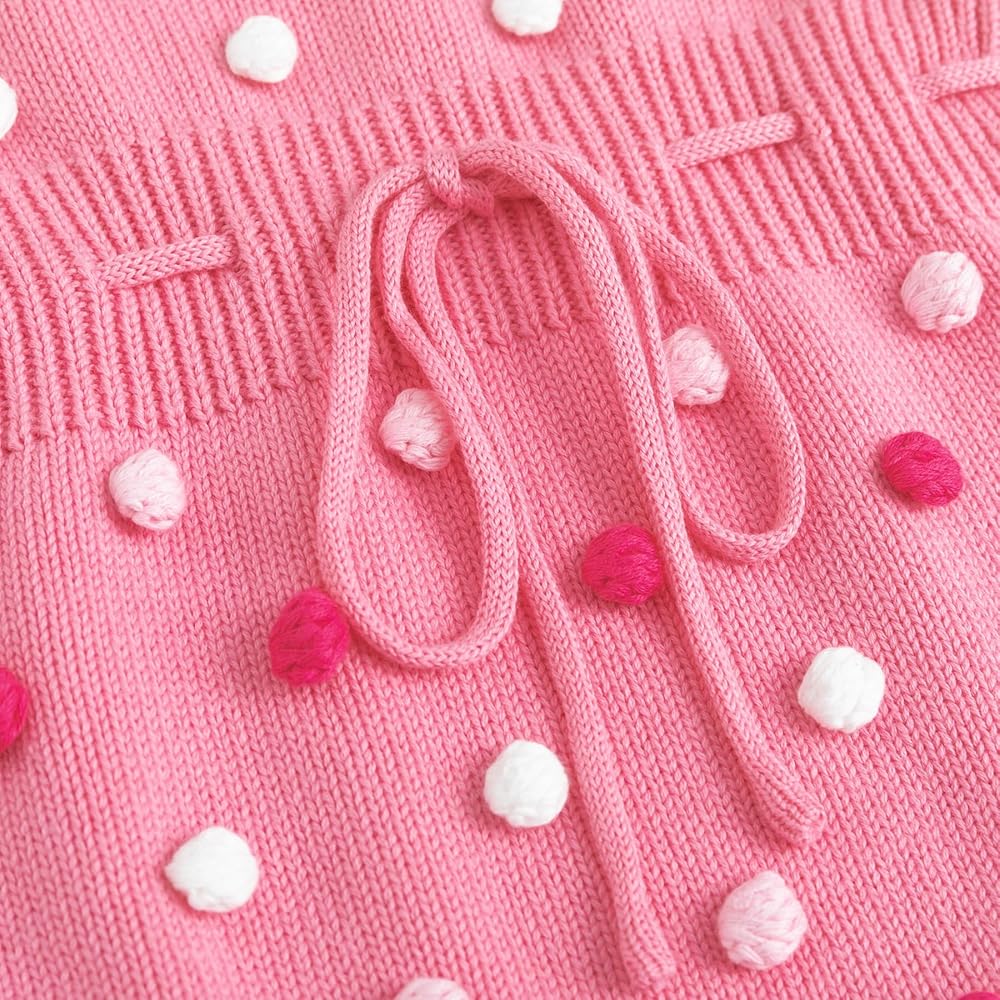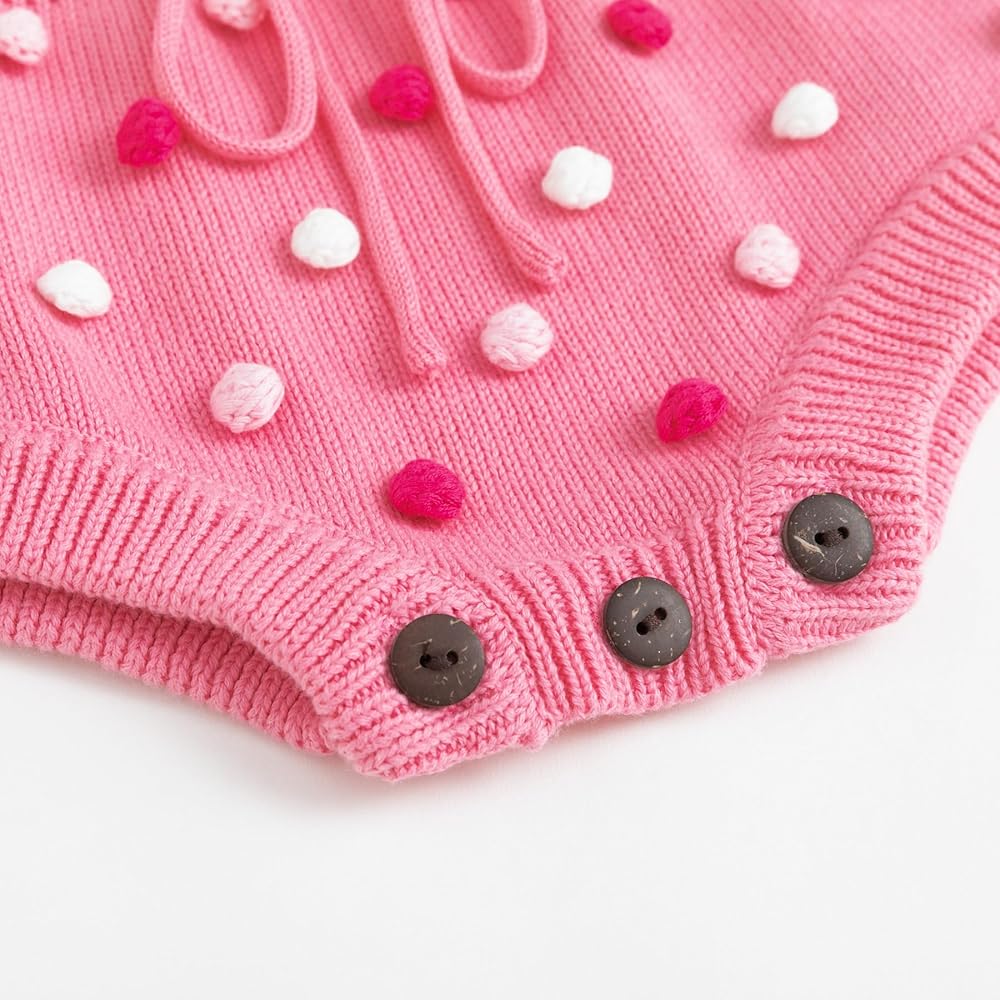💟Design: The knitting baby girl romper with the waist tie and wood snap. The most special design pom poms! Let your girl is the most adorable one.