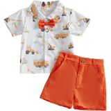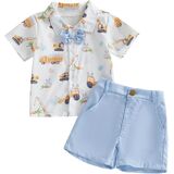 DESIGN: Toddler boy outfits, kids summer clothes, kids tops use cartoon animal dinosaur print, turn-down collar, short sleeve, button-down design, matches solid color shorts, chic and stylish.