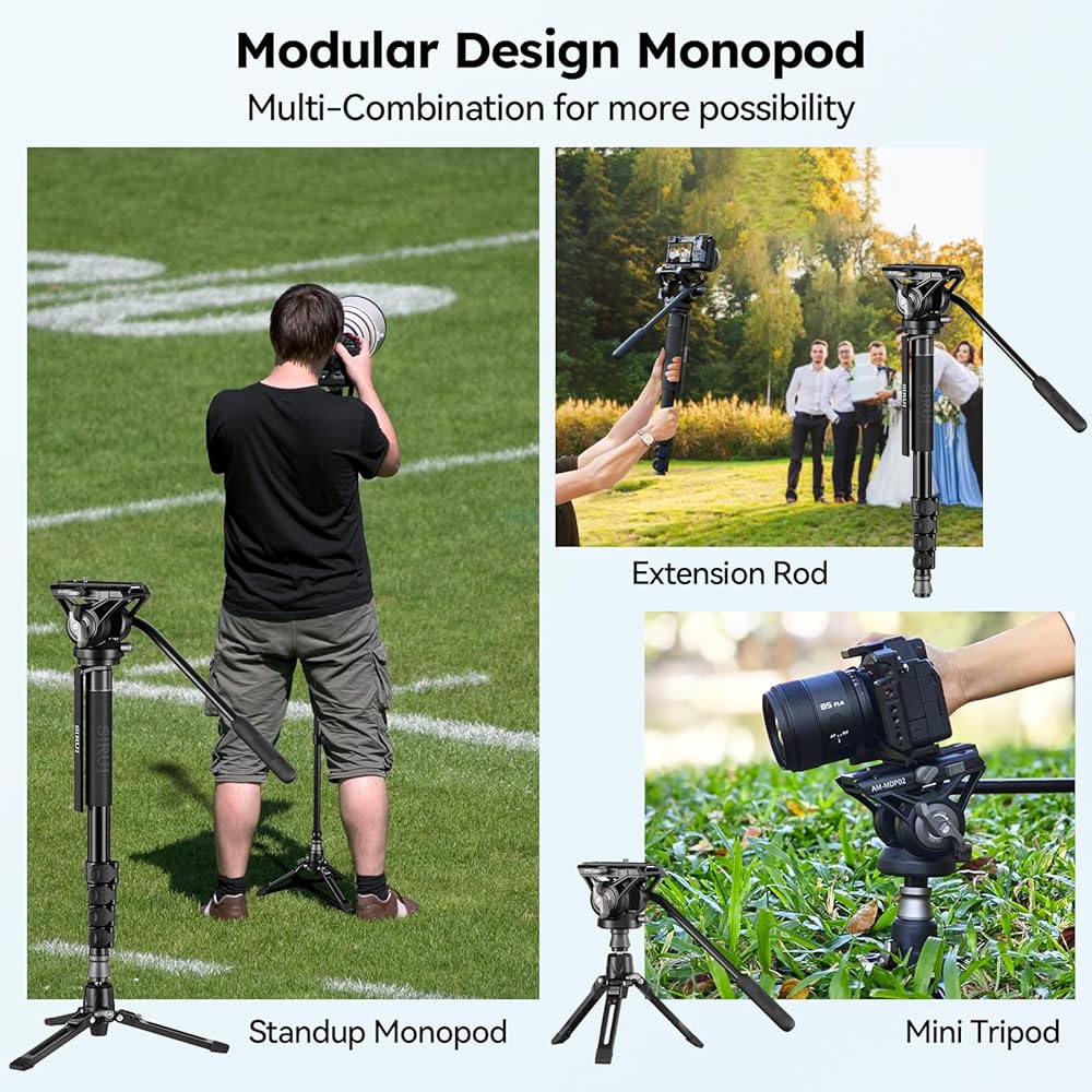 Flexible 3-In-1 Monopod with Feet: The modular design make camera monopod more flexible and surprising. 4-modular include mounting plate, main tube section, tripod base and rubber foot, provide 3 options for using: 1) Fixed video monopod with adjustable feet, 2) Extension rod without the feet, 3)Low angle camera tripod with base.
