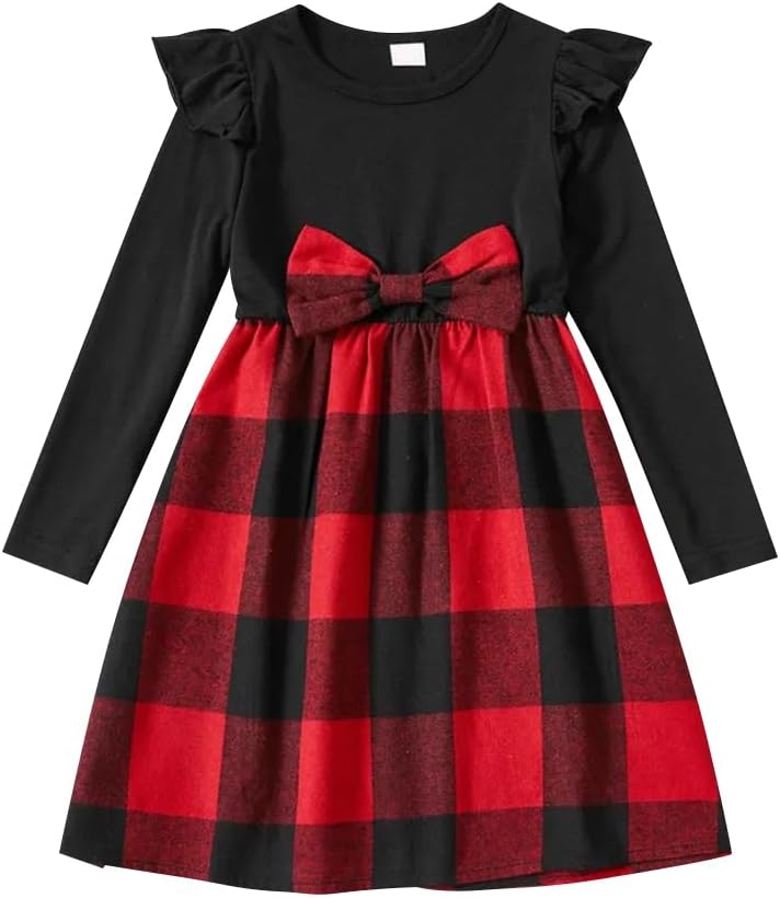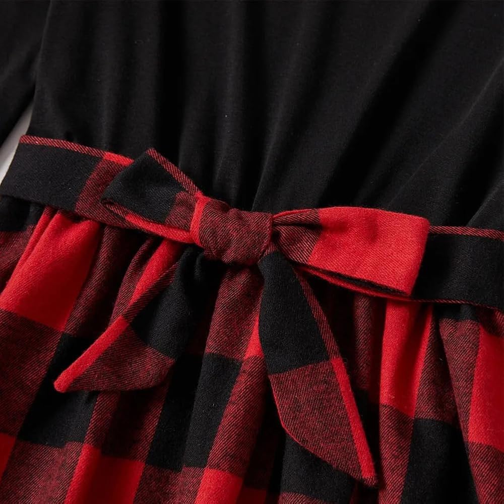 WELL-DESIGNED: This is a classics long sleeves Red black green Plaid christmas Fall Winter mommy and me dresses, pretty Green Black gingham Red Black Buffalo Plaid matching dresses for mother and daughters christmas Holiday, long sleeve Red Black Plaid mommy and me christmas dresses matching set, green plaid mother daughter dresses matching set, Red Black Buffalo Plaid mother daughter matching outfits to wear in fall Christmas theme, with a self-tied bowknot at front makes you more graceful.