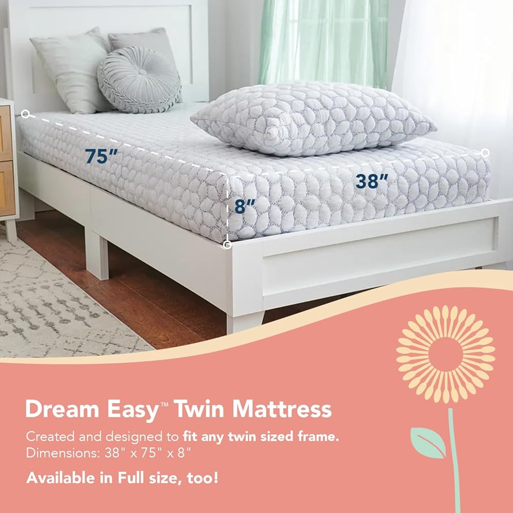 Allergy-Friendly: The Dream Easy mattress is EWG VERIFIED and crafted without polyurethane foam, flame retardants, or common harmful chemicals, making it an excellent choice for those with sensitive skin and health-conscious families.