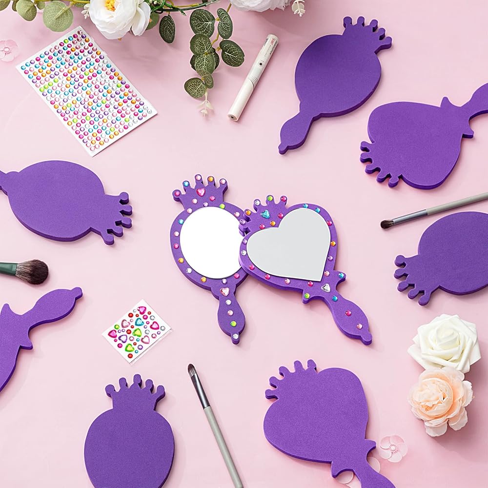 20 Pcs Princess Foam Mirrors: you will receive 20 pcs princess foam mirrors, which are equipped with 6 matching DIY rhinestone stickers; Sufficient quantity and various styles will meet your DIY needs, and you can share them with your friend and family