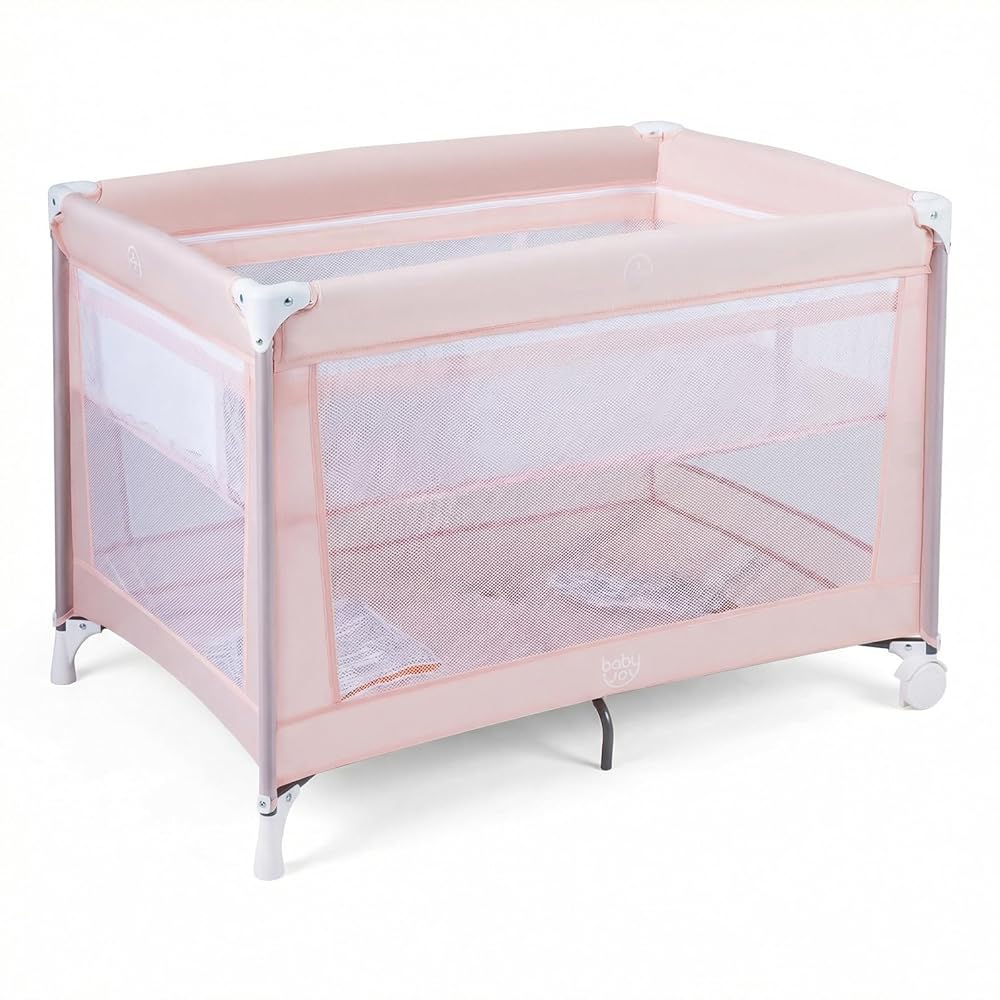 【Accompany the Baby to Grow up】 BABY JOY 3 in 1 foldable pack and play designed to transit from newborn to toddler, accompanies the growth of your baby. Water-resistant changing table holds a baby stably. Removable newborn bassinet for baby to take a nap. The full-sized toddler playard could provide the wide space allows the baby to practice standing and walking, available from baby to toddles. (Suitable Mattress Pad's Size: 38''x26'').