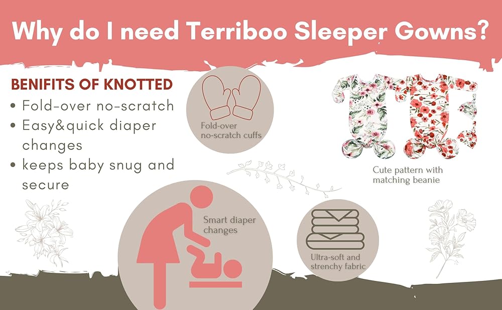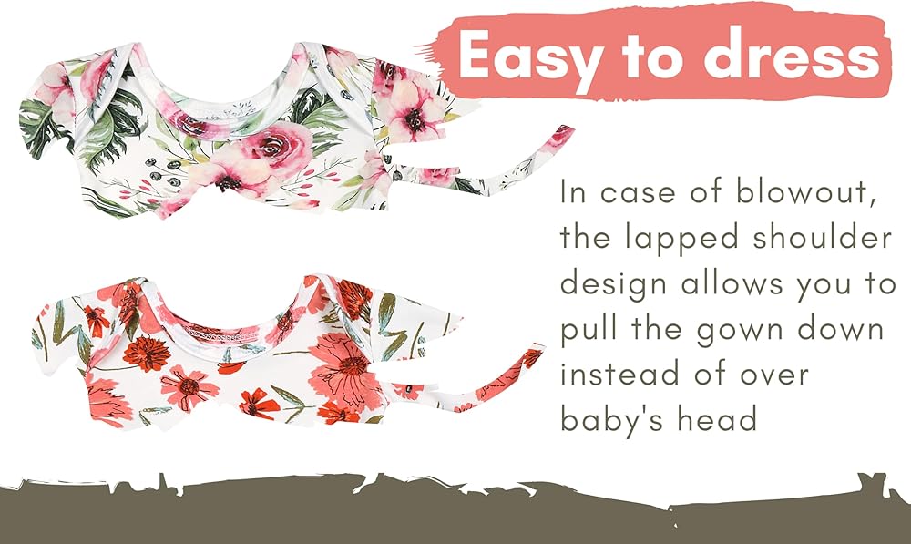 Ultra-soft & stretchy -Our baby gown is buttery soft, woven with the mixture of polyester and spandex. Gentle on your baby's delicate skin, this stretchy, breathable fabric provides a snug fit and the convenient gown style makes diaper changes a breeze.